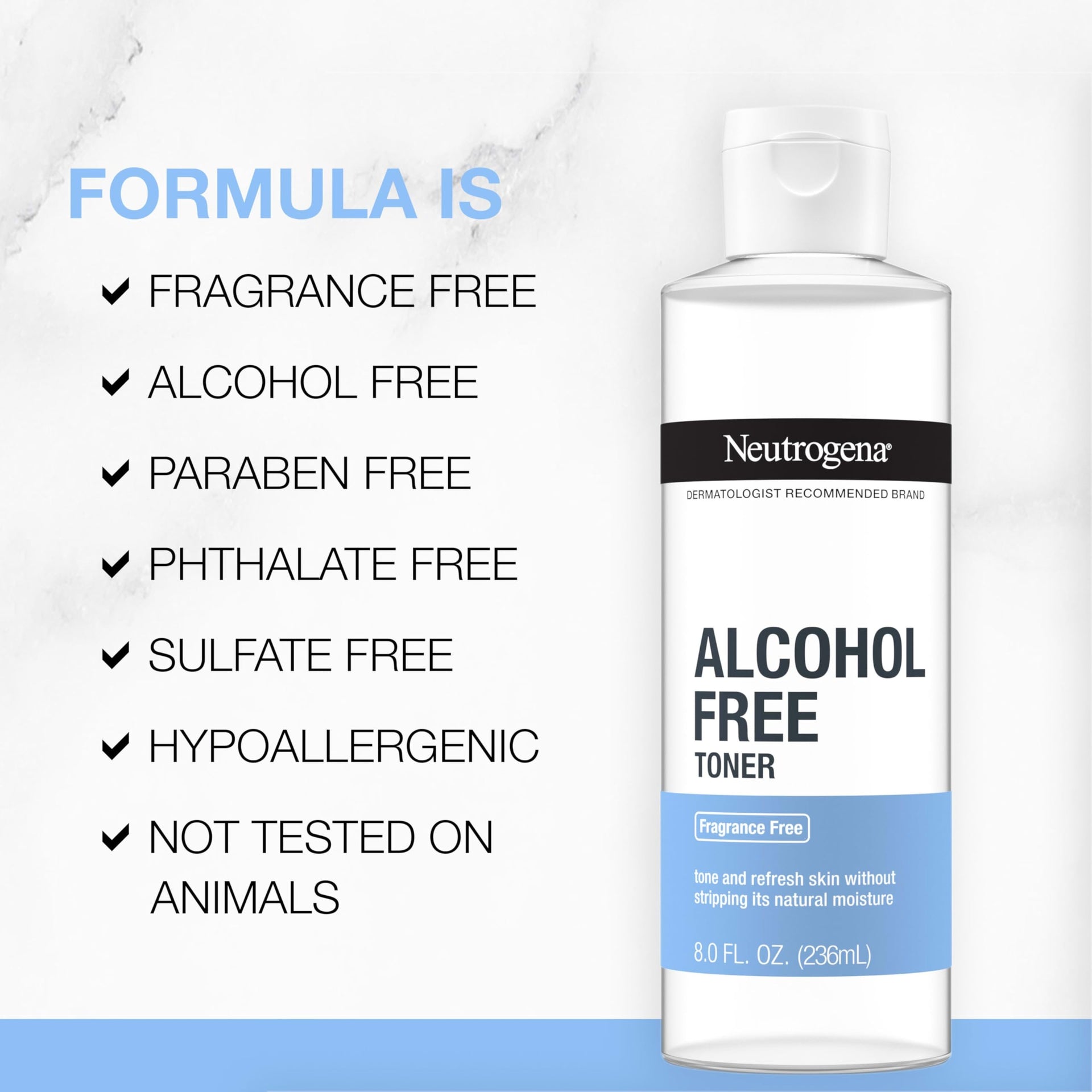 - Neutrogena's, non-comedogenic, alcohol-free toner gently tones skin while respecting your skins barrier leaving skin soft and healthy-looking