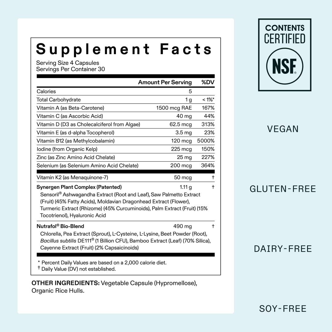 Nutrafol Women’s Hair Growth Supplement | Clinically Tested for Thicker, Stronger Hair | 100% Vegan, Dermatologist Recommended | 1-Month Supply