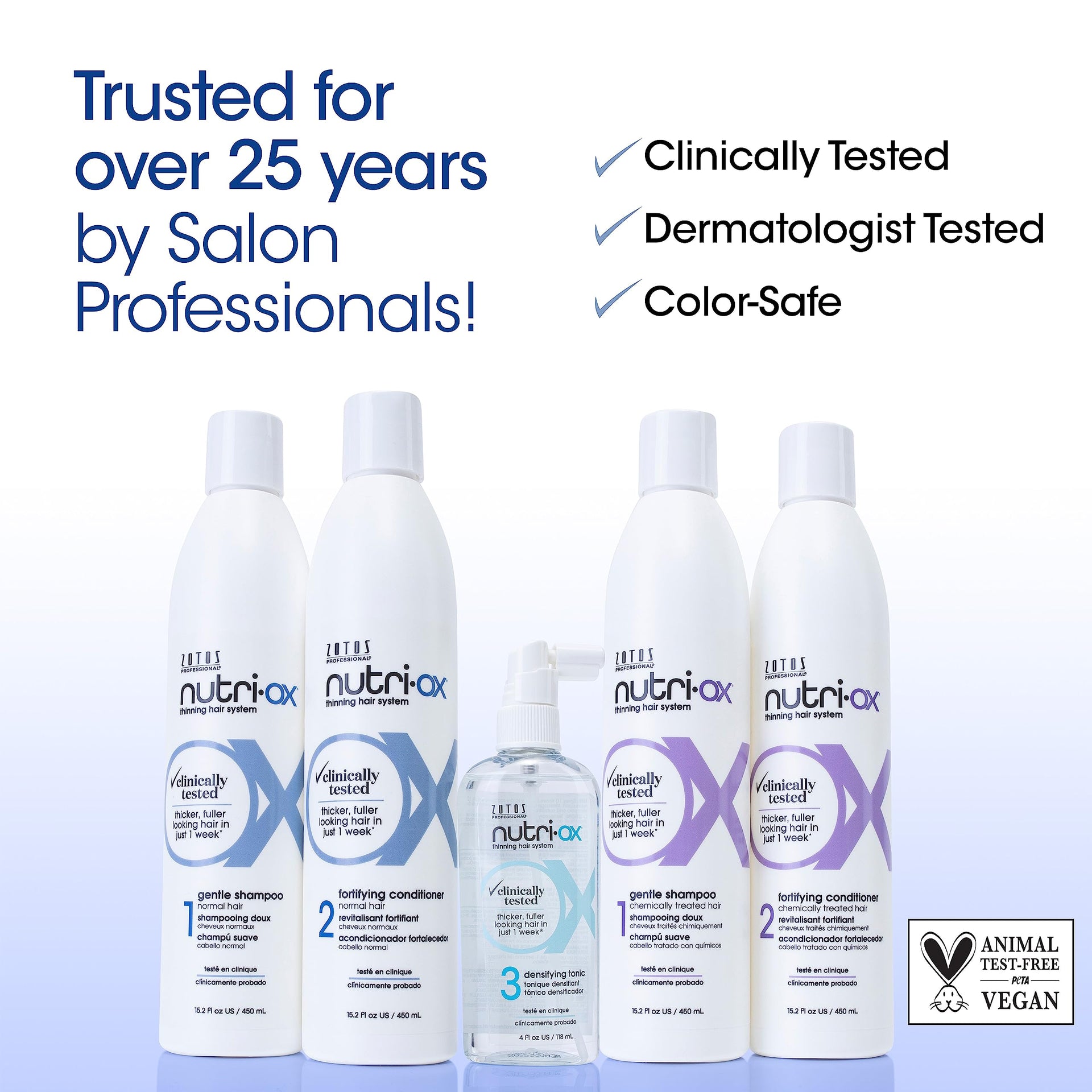 Conditions colored or chemically-treated hair from root to tip to help maintain the optimal scalp environment for healthy looking hair that doesn’t feel weighed down. Clinically & Dermatologically tested. Proven formulas trusted for over 25 years. Nutri-Ox thinning hair system was clinically and dermatologically tested to help maintain the optimal scalp environment for healthy, thicker, further-looking hair when used as a 3-step system of shampoo, conditioner & tonic.* *Based on a 1-week study of Nutri-Ox Gentle Shampoo, Fortifying Conditioner & Densifying tonic.