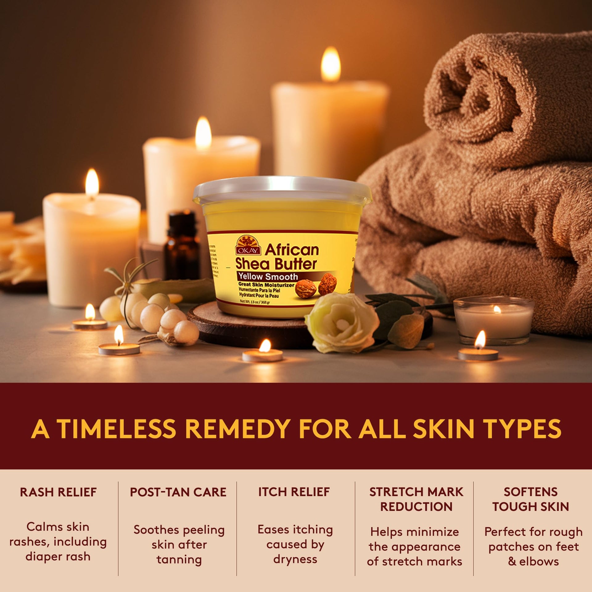 Okay Yellow Raw African Shea Butter for Hair & Skin, Daily Moisturizer for Face & Body, Soothes Dryness, Stretch Marks, 13oz Jar