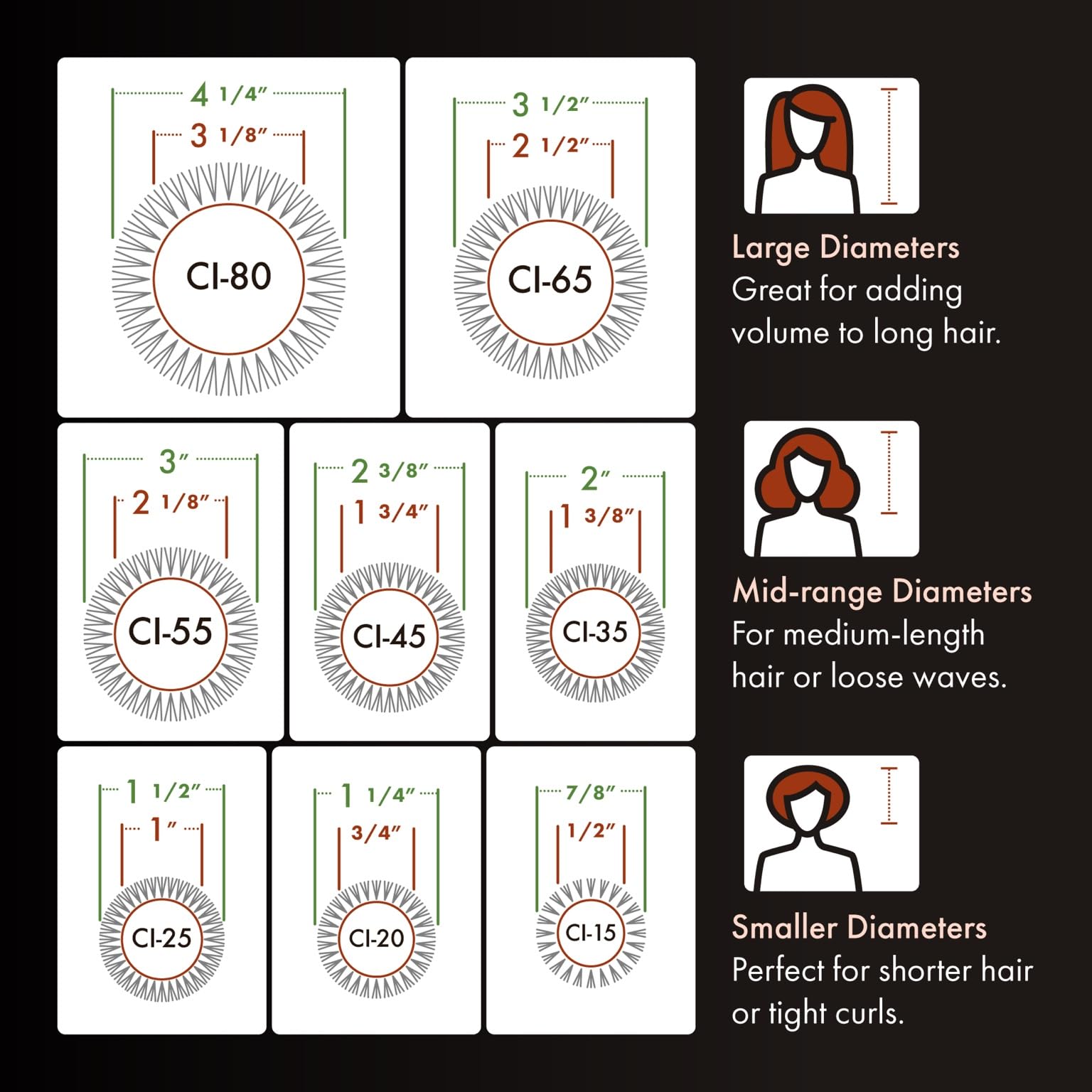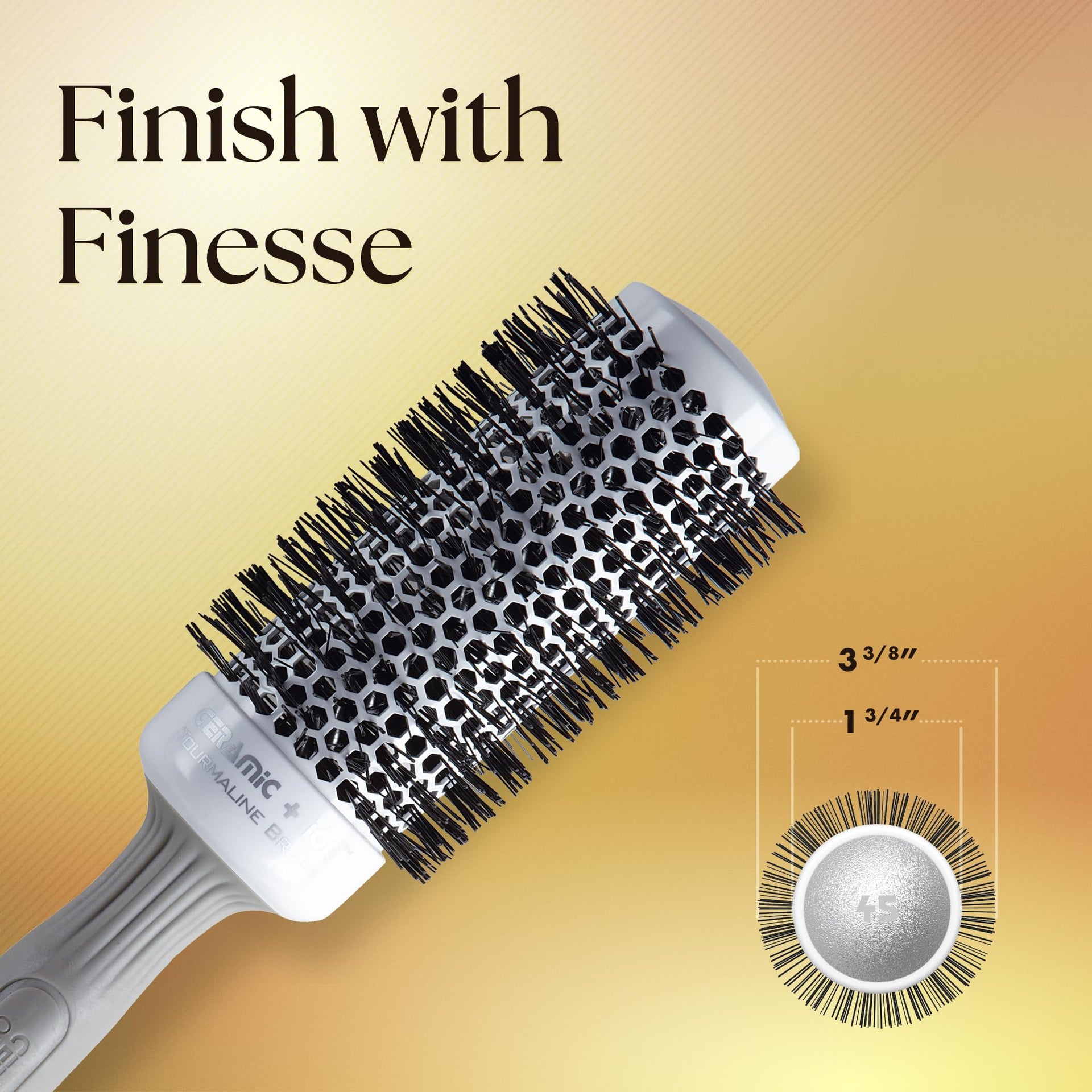 Olivia Garden Ceramic + Ion Round Thermal Brush 1.75" – Professional Blowout Brush for Normal to Thick Hair, Non-Electrical, White & Grey