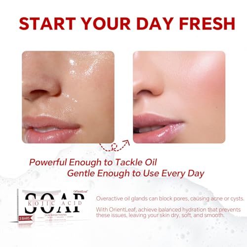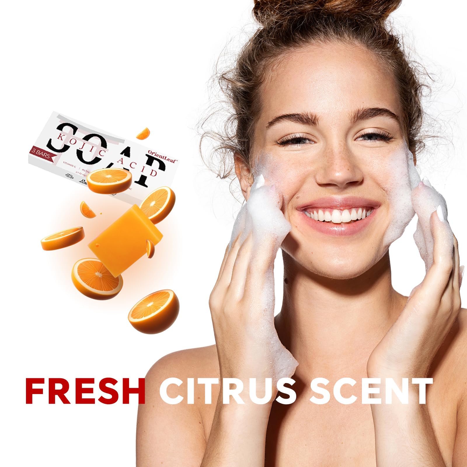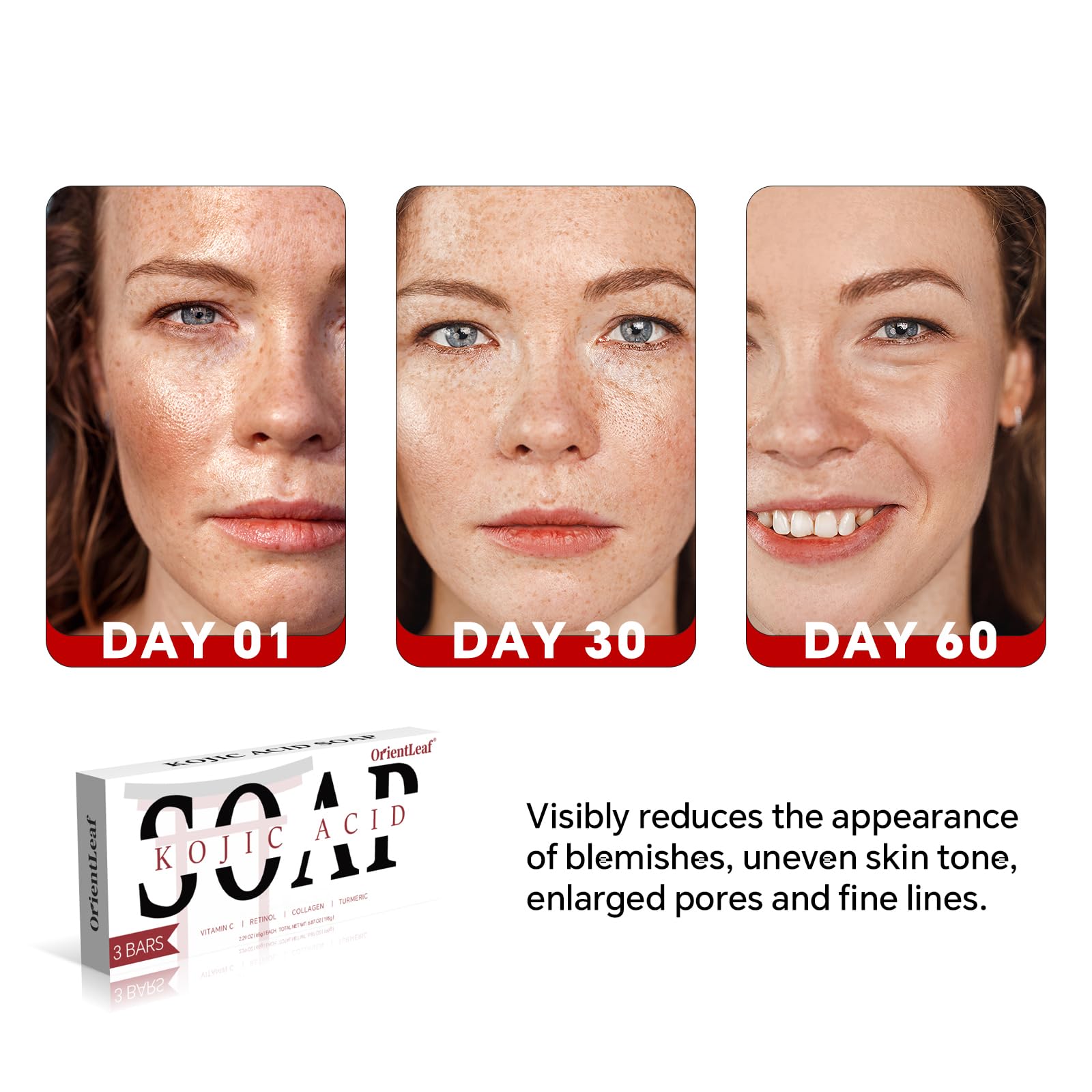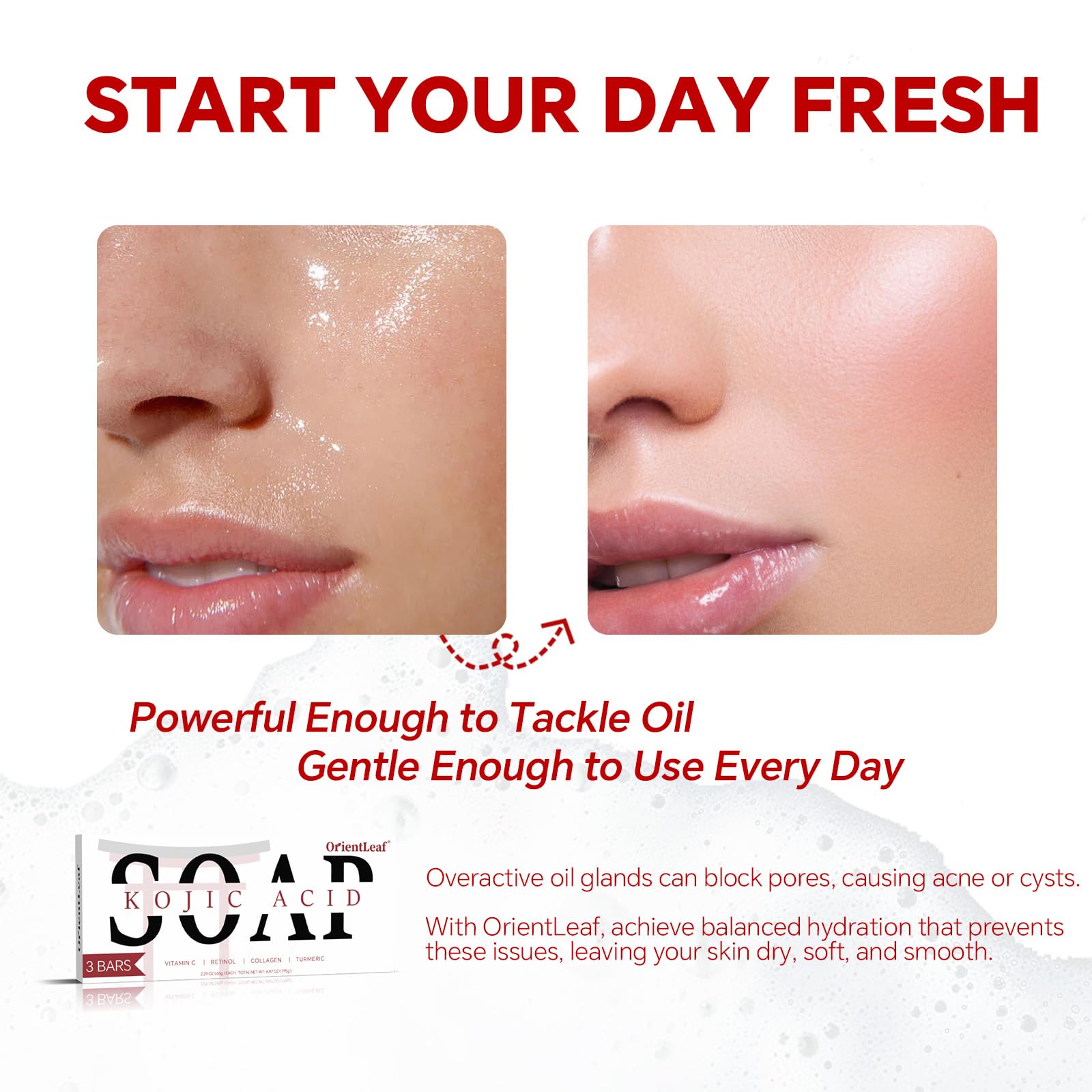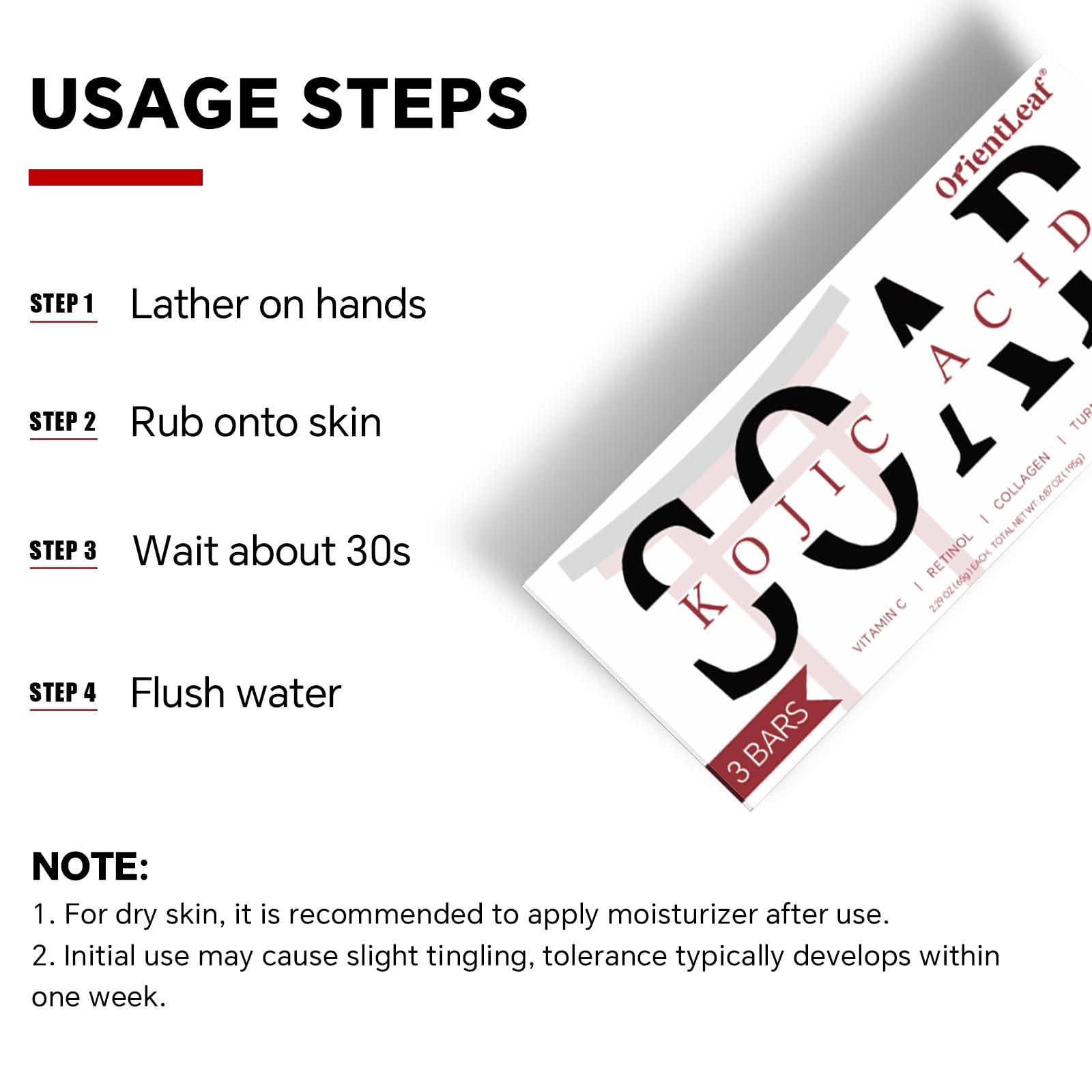 ORIENTLEAF Kojic Acid & Turmeric Soap 3-Pack – Brightening Bar for Dark Spots, Face & Body, Vitamin C, Shea Butter & Collagen