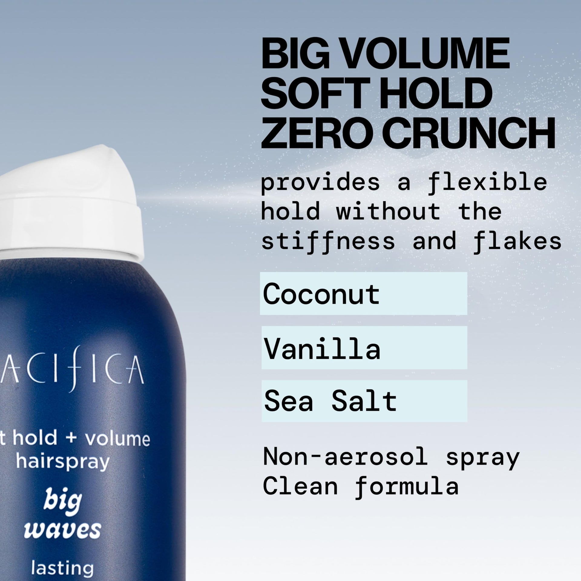 Pacifica Beauty Big Waves Coconut, Vanilla & Sea Salt Hairspray, Controls Frizz & Adds Volume, Designed for Wavy Hair, Vegan & Cruelty-Free, 6 Fl Oz