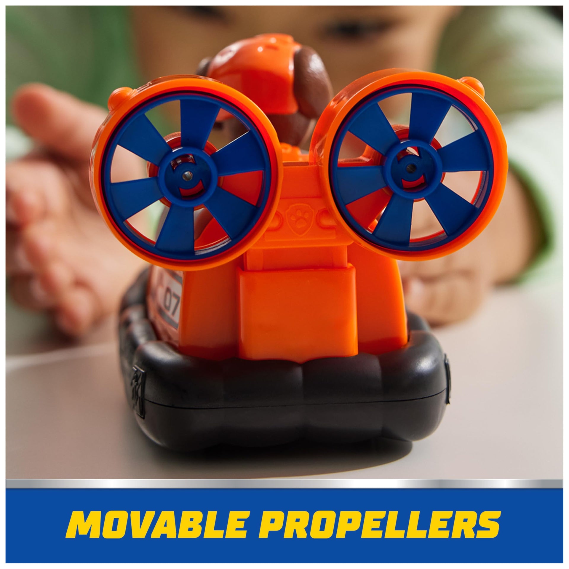 - PAW PATROL HOVERCRAFT: Clip Zuma into the driver’s seat of his hovercraft, that features authentic detailing, working wheels & fans that spin, before racing off on a thrilling mission