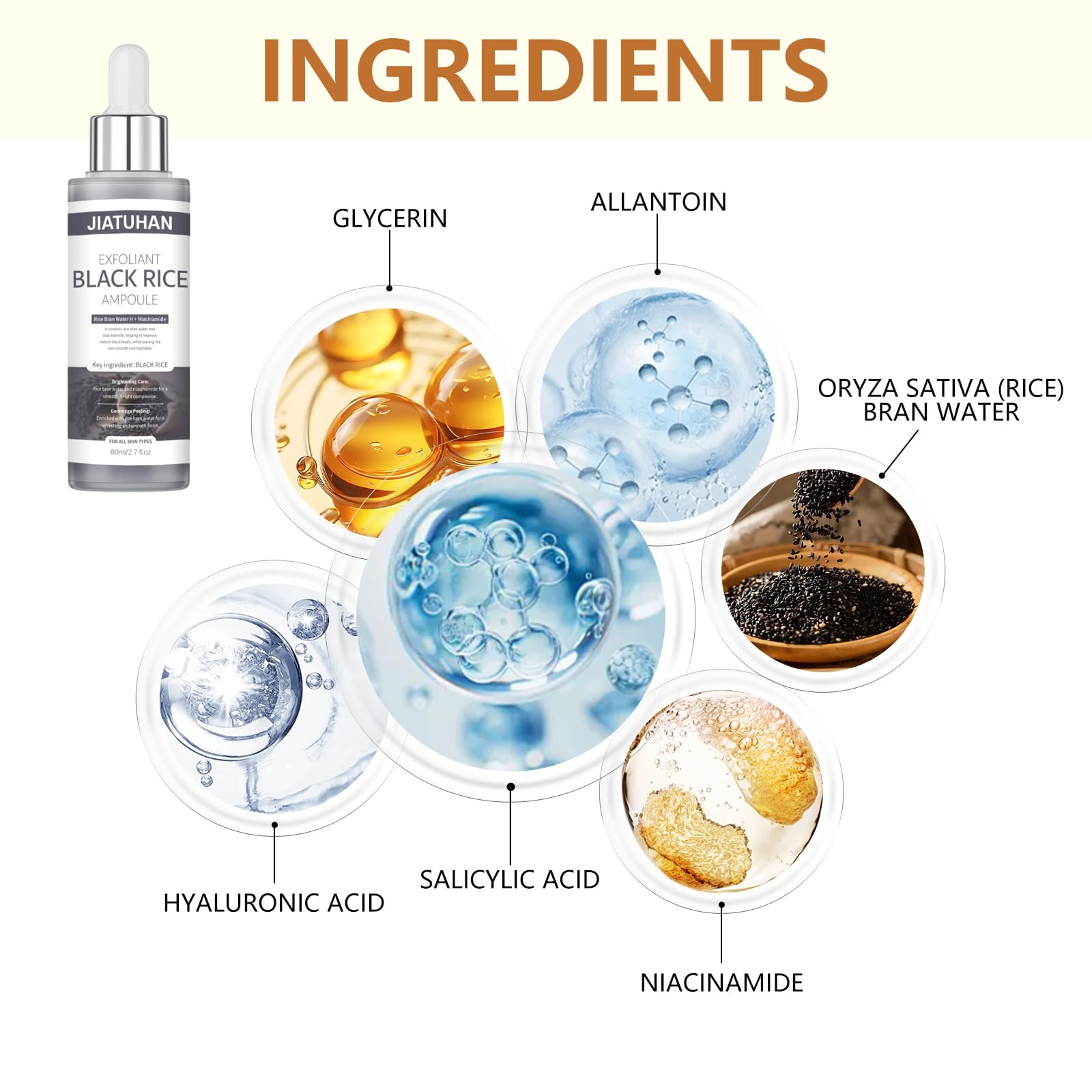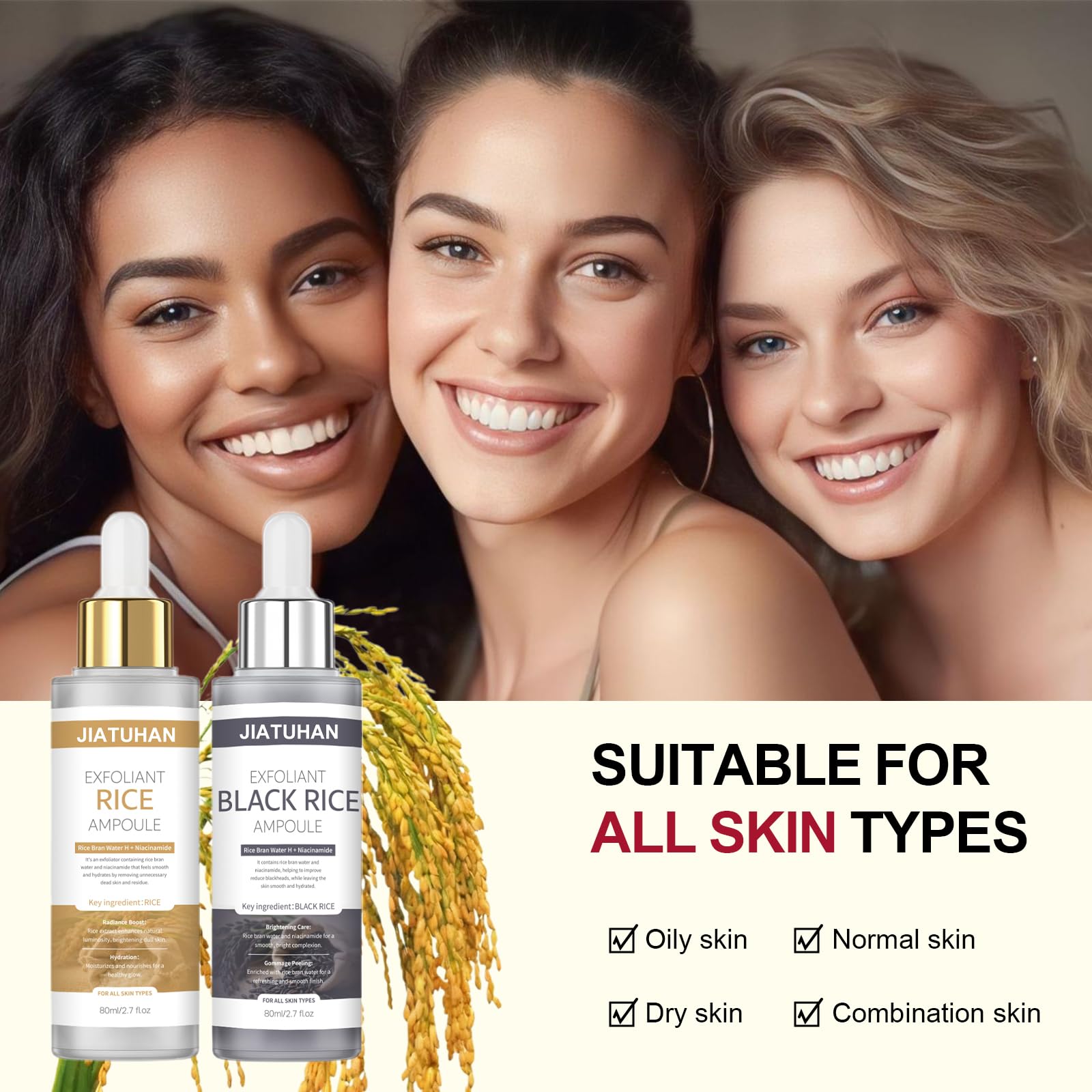 - 【Barrier-Friendly Exfoliation with Soothing Ingredients】Black rice exfoliant-Formulated with black/white rice extracts, allantoin, and hyaluronic acid, our ampoule exfoliates while soothing and hydrating. It strengthens the skin barrier during use, preventing the tightness and peeling often with acid treatments, leaving skin balanced and comfortable.