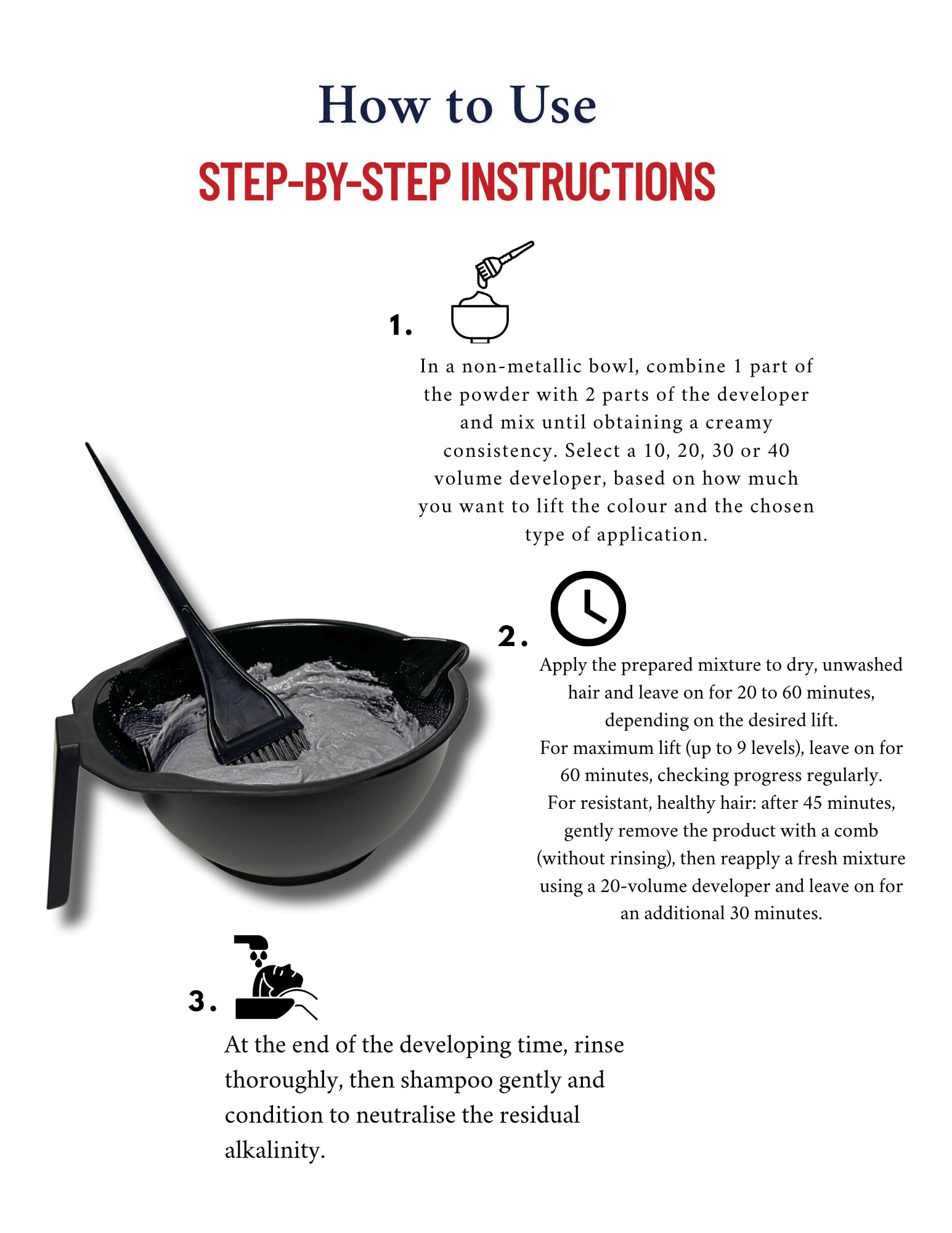 Professional Blondette Charcoal Bleach with PLEX Technology | Lifts Up to 9 Tones | Rapid Hair Lightener 460g | Made in Italy + Measuring Spoon