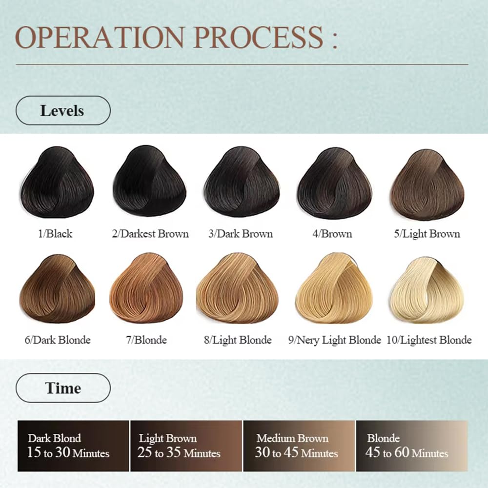 - 4. 【35-Minute Fast Lift】 – Skip the 2-Hour Wait! Need quick results? Our high-efficiency sodium persulfate blend lifts 4-7 levels in 30–35 minutes—50% faster than basic bleaches. Includes peroxide oxidant for even coverage on dark hair (tested on Level 1-6). Ideal for busy moms or last-minute events!