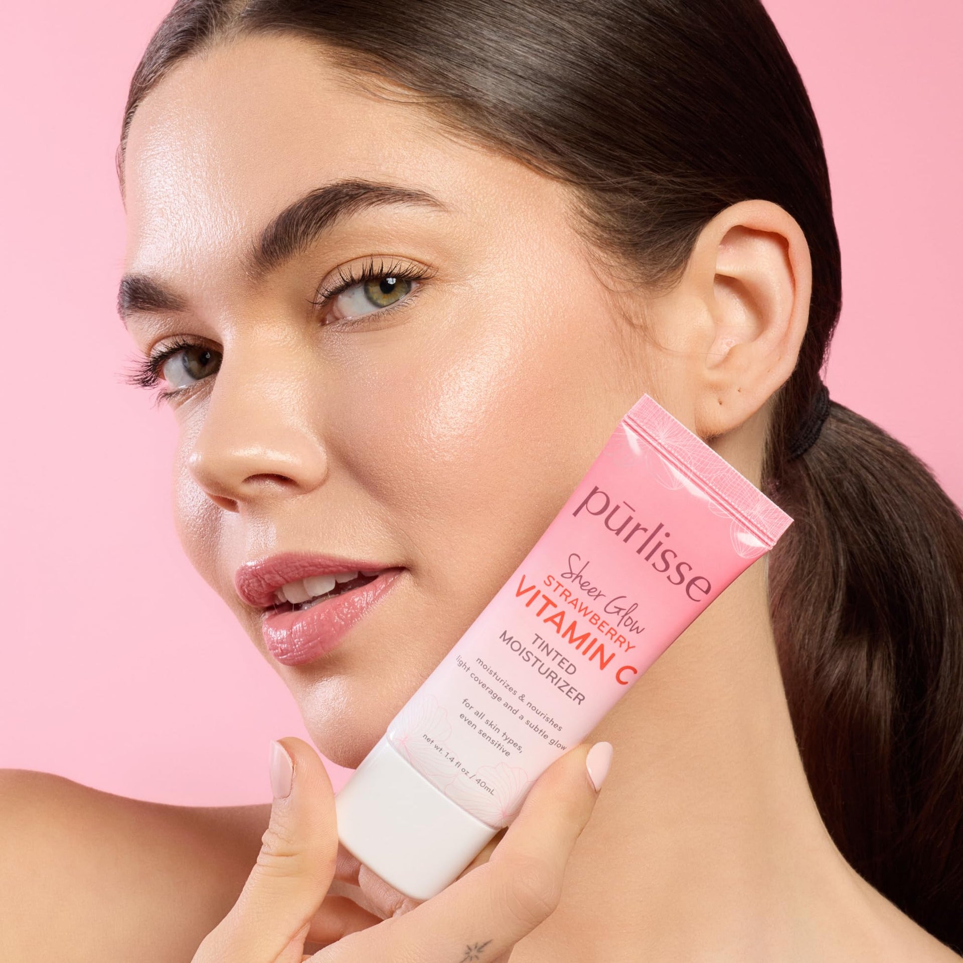Details: Reveal radiant, healthy-looking skin with pürlisse Sheer Glow Strawberry Vitamin C Tinted Moisturizer—a breathable face tinted moisturizer that blurs imperfections while nourishing the skin. This clean beauty essential acts as a lightweight tinted primer, prepping your skin with a sheer wash of color and glow. Infused with fruit-powered antioxidants, it functions as redness reducing skin care, helping to calm, hydrate, and even out skin tone. The formula features strawberry and sea buckthorn extracts rich in vitamin C, known to brighten, while blueberry and cranberry offer detoxifying hydration. Designed for daily use, this hybrid product performs like a tinted serum with the comfort of a moisturizer, making it a go-to tinted moisturizer for mature skin or anyone seeking a dewy finish without heaviness. Though it doesn't contain SPF, it layers beautifully under your favorite tinted face sunscreen, allowing for flexible routines. Ideal for clean beauty minimalists and glow-seekers alike, this tinted moisturizer for face blends effortlessly and enhances skin with a natural, no-makeup makeup finish.