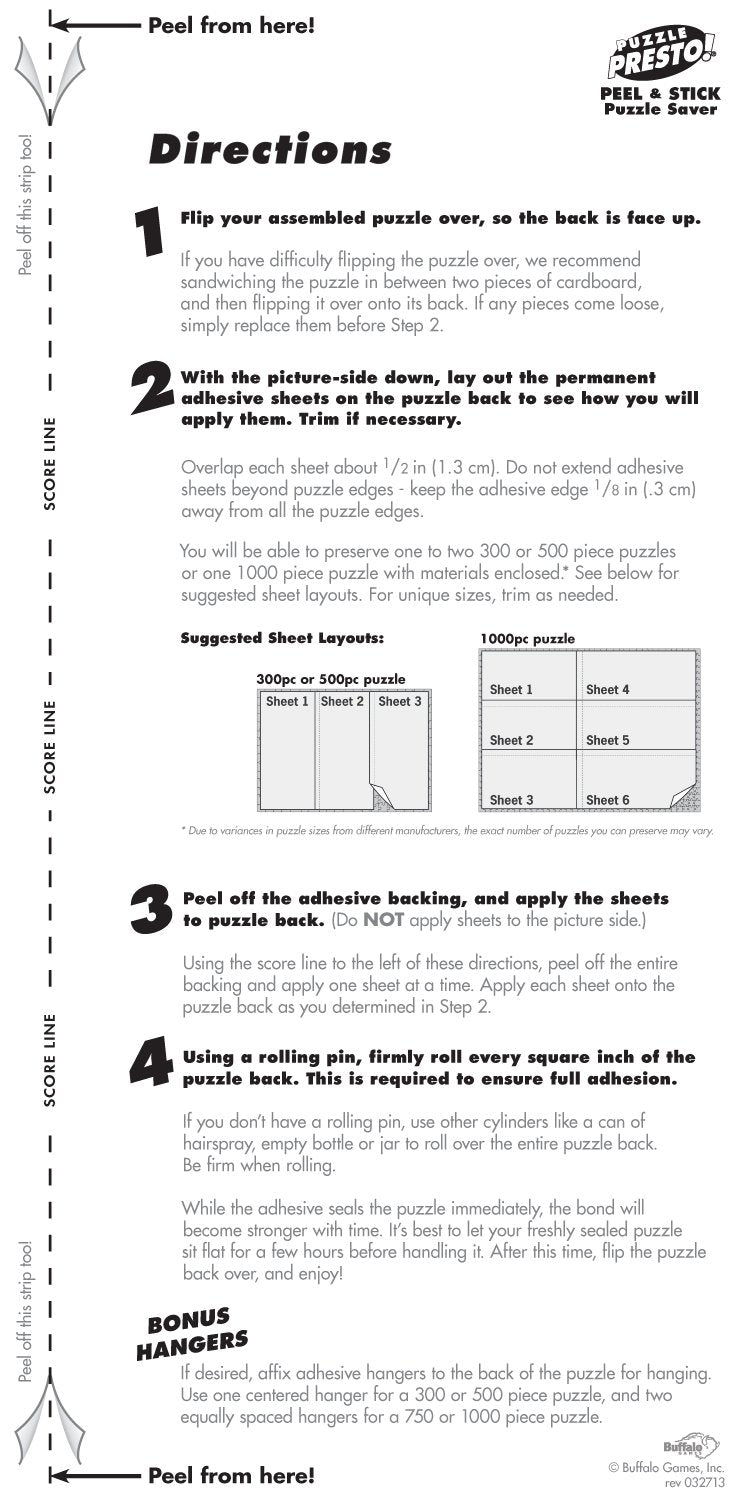 Puzzle Presto Peel & Stick Saver: The Original and Still the Best Way to Preserve Your Finished Puzzle! - 6 Adhesive Sheets and 2 Adhesive Hangers