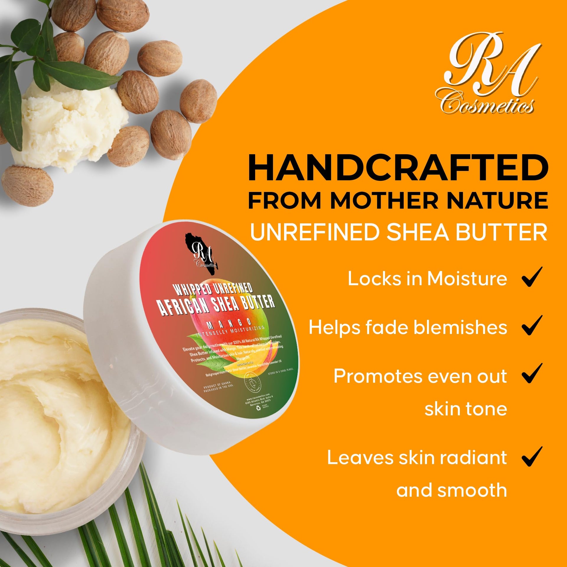 RA COSMETICS Whipped Mango Shea Butter – 100% Pure African Shea, Handcrafted Moisturizer for Skin & Hair, 12oz Jar