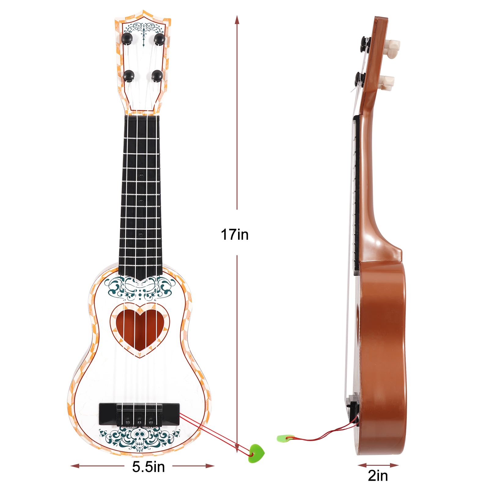 - [Compact Size] Measuring 17 inches long, 5.5 inches wide, and 2 inches tall, this ukulele is compact and lightweight, making it easy for young children to carry and handle. The small size is also perfect for their small hands, encouraging them to pick up and play.
