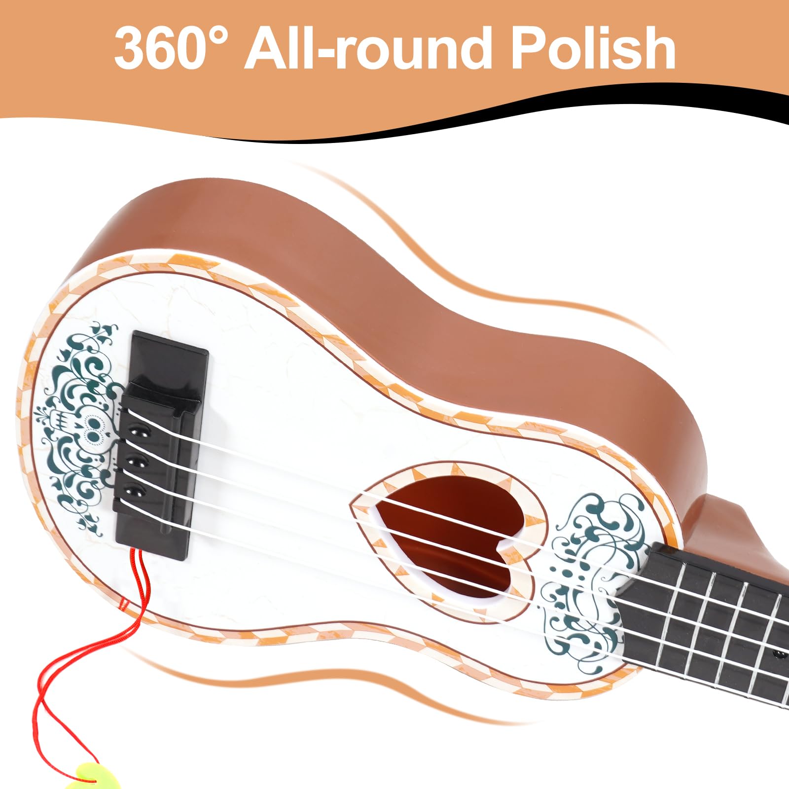 - [Portable and Durable] Despite its lightweight and compact size, this ukulele is made to last. The durable plastic material resists common wear and tear, ensuring that the ukulele can accompany children through many years of music-making. It's also easy to transport, making it a perfect travel companion for music lessons or family gatherings.