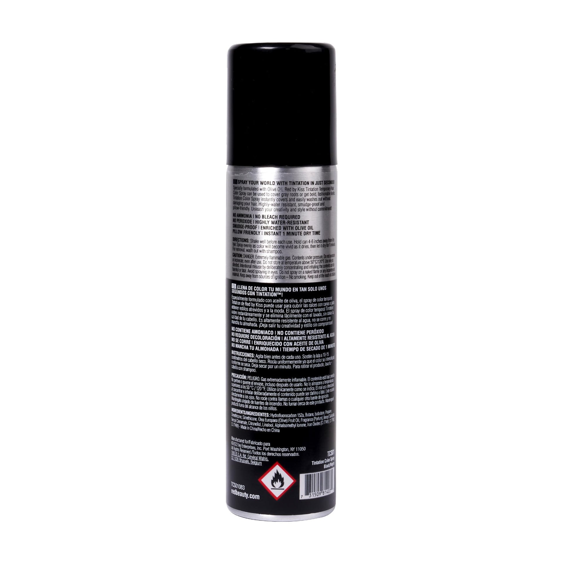 Red by Kiss Tintation Temporary Hair Color Spray Black 2.82oz | Instant Gray Root Touch-Up | Water-Resistant, Smudge-Proof, Quick-Dry, Easy Wash Out