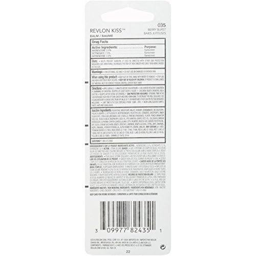 Revlon Kiss Tinted Lip Balm with SPF 20, Hydrating, Flavored, Infused with Natural Fruit Oils, 035 Berry Burst, 0.09 oz