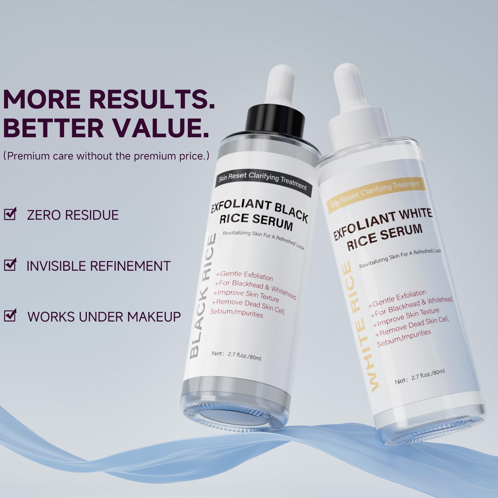 - [Rice Exfoliant ] Our rice exfoliant utilizes a dual-phase complex to gently lift impurities without stripping natural oils. This formula ensures a balanced, residue-free finish while maintaining skin's hydration. Ideal for daily use, the black rice exfoliant provides mild exfoliation for all skin types