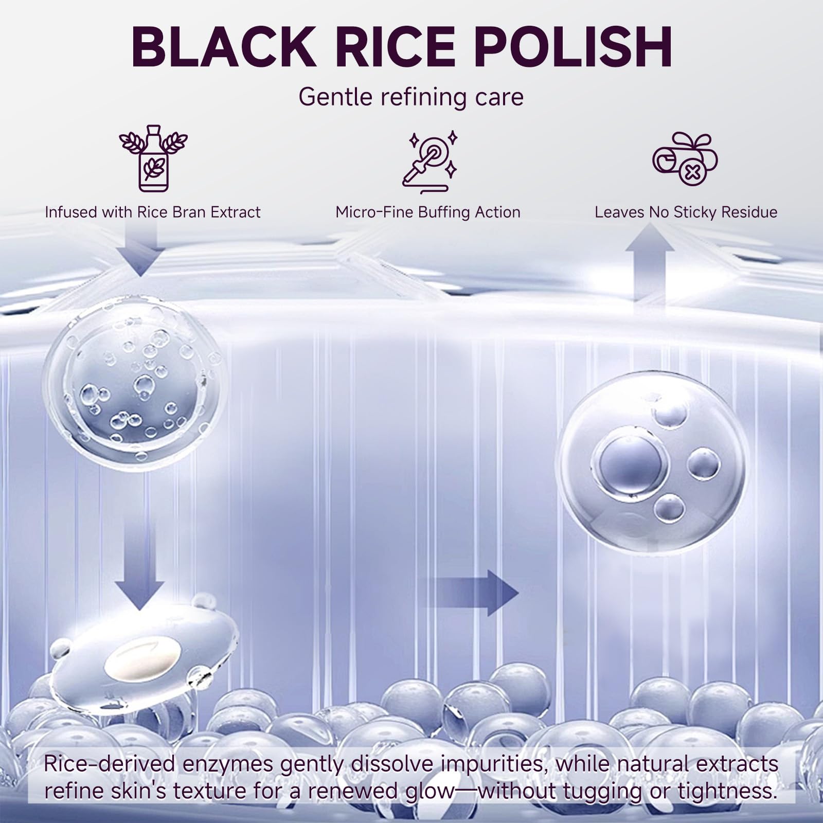 - [Black Rice & White Rice Exfoliant ] Our black rice & white rice exfoliant utilizes a dual-phase complex to gently lift impurities without stripping natural oils. This formula ensures a balanced, residue-free finish while maintaining skin's hydration. Ideal for daily use, the black rice exfoliant provides mild exfoliation for all skin types. White rice exfoliates more gently, enhances hydration and moisturizing effects, and is more easily absorbed by the skin