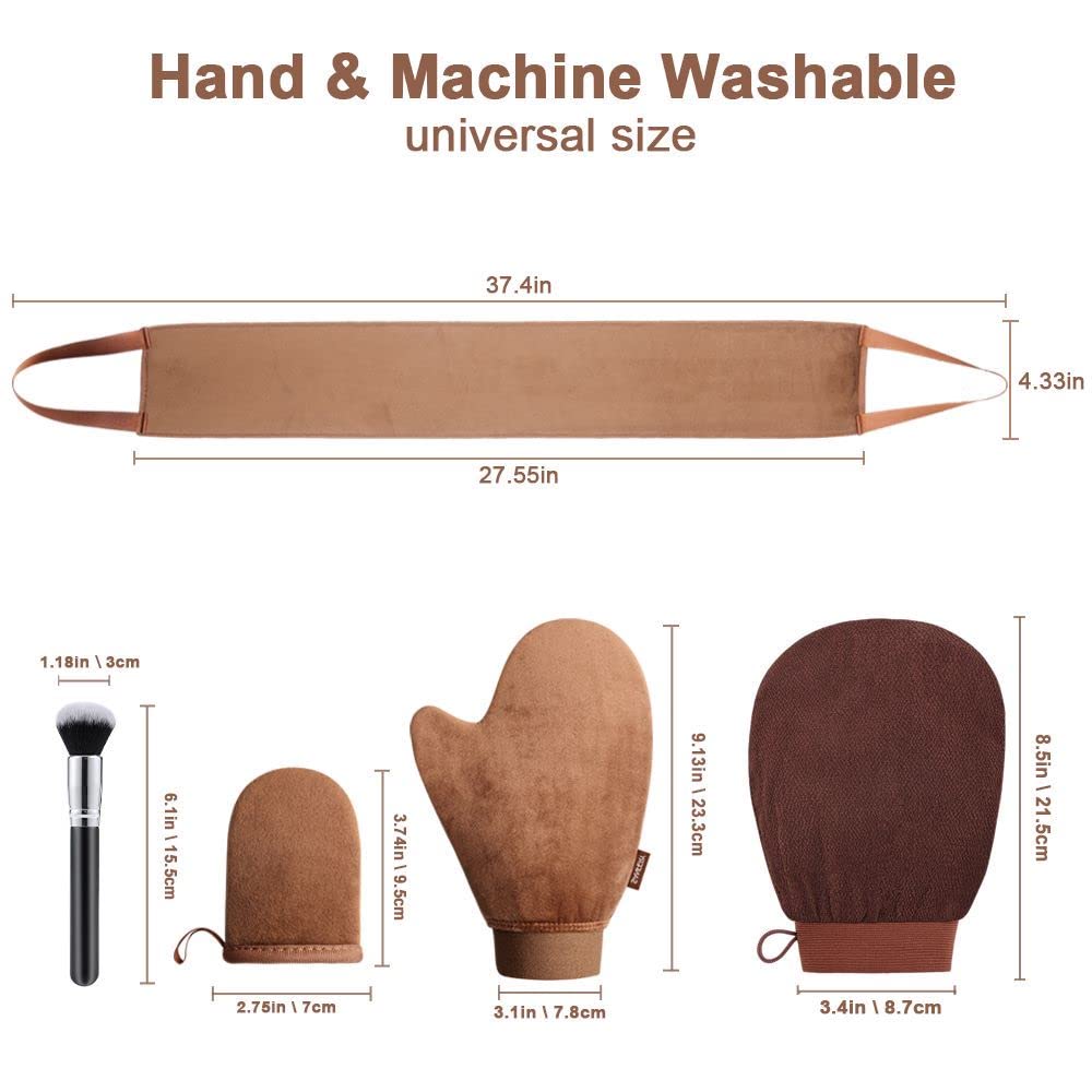 Sanfery 5-Piece Self Tanning Mitt Kit with Self Tanner Back Applicator, Self Tanning Brush, Exfoliating Mitt & Accessories for Flawless Tan