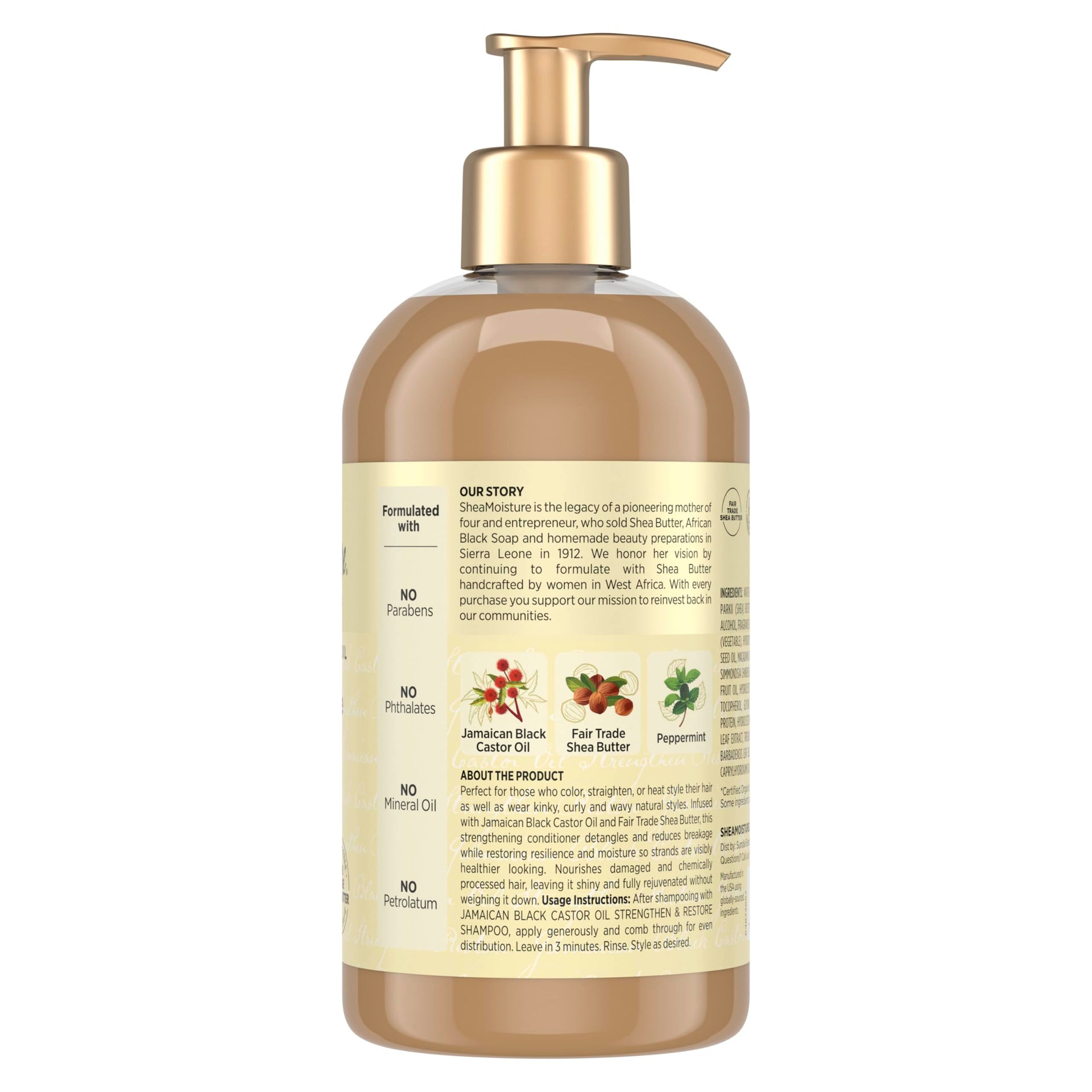 Details: A Shea Moisture strengthening conditioner that detangles and restores moisture without weighing hair down. Perfect for those who regularly color, straighten or perm their hair as well as kinky, curly and wavy natural styles. This conditioner is formulated with Jamaican Black Castor Oil and Shea Butter to nourish and strengthen damaged, brittle hair, reducing the appearance of breakage and shedding. Peppermint Oil helps stimulate the scalp for an invigorating experience. This conditioner for hair leaves hair shiny and fully rejuvenated. Like all of our hair products, this cleansing conditioner contains no silicone, sulfates, parabens, mineral oil or petrolatum. Shea Moisture Jamaican Black Castor Oil Conditioner is also phthalate-free. How to Use: After shampooing with Jamaican Black Castor Oil Strengthen & Restore Shampoo, apply generously and comb through for even distribution. Leave in for 3 minutes. Rinse. Style as desired. SheaMoisture's Story: SheaMoisture is the legacy of Sofi Tucker, a pioneering mother of four and an entrepreneur, who sold Shea Butter, African Black Soap and homemade beauty preparations in Sierra Leone in 1912. We honor her vision by continuing to formulate with Raw Shea Butter handcrafted by women in Africa. With every purchase you show support of our mission to reinvest back in our communities.