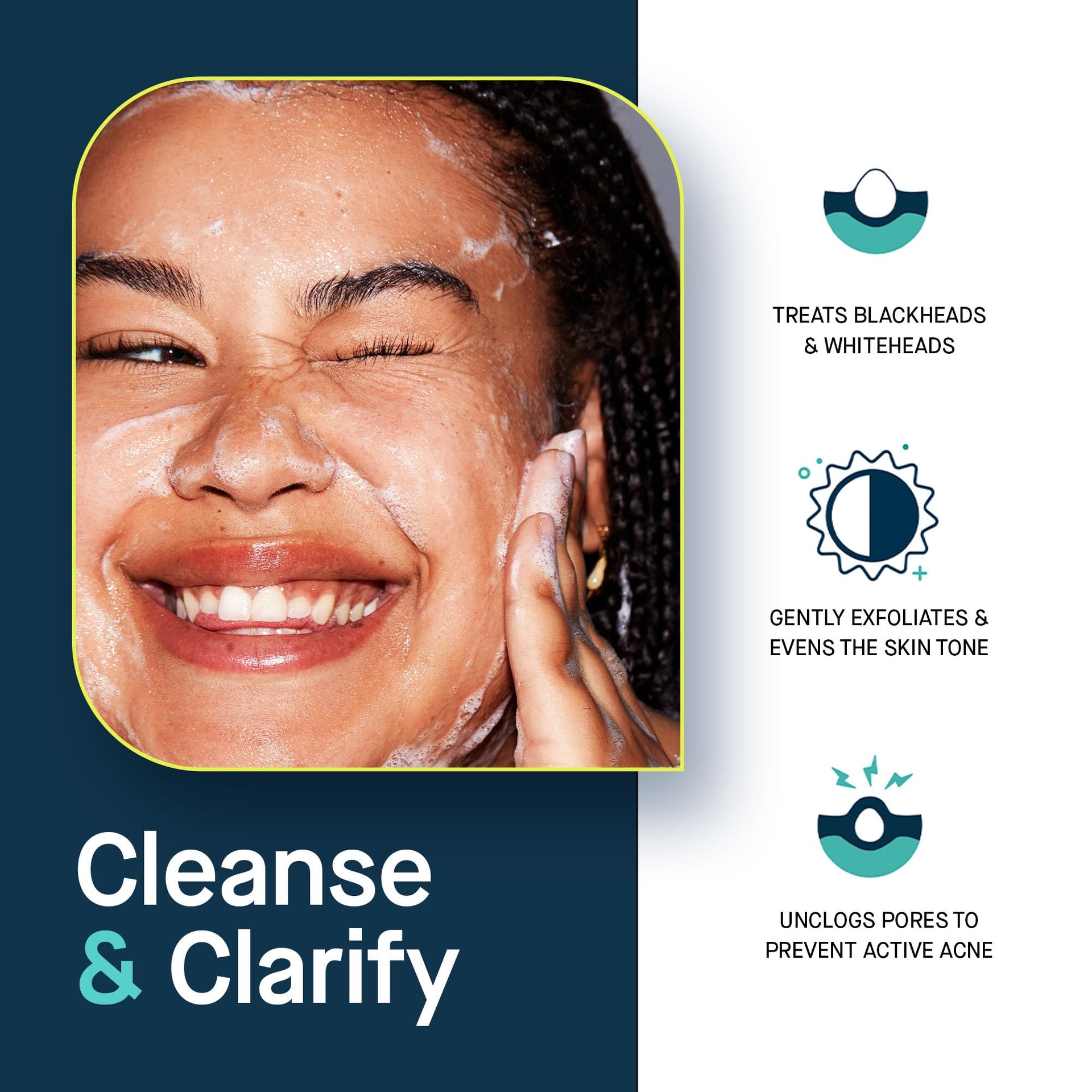 - CLEANSE & CLARIFY: Salicylic acid cleanser gently exfoliates with its gel-based formula to clear away impurities and excess oil. Helps reduce surface oil and impurities, and maintain a refreshed, balanced complexion without over-drying your skin.
