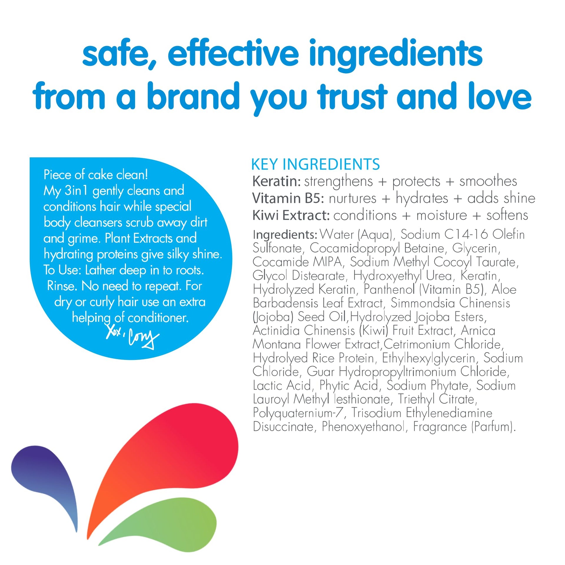 - Gentle & Nourishing Care: Enriched with Keratin, Vitamin B5 & Kiwi Extract, this kids shampoo and body wash is gentle on skin & hair. Plus, it's kids conditioner too, helping detangle knots for easier hair management