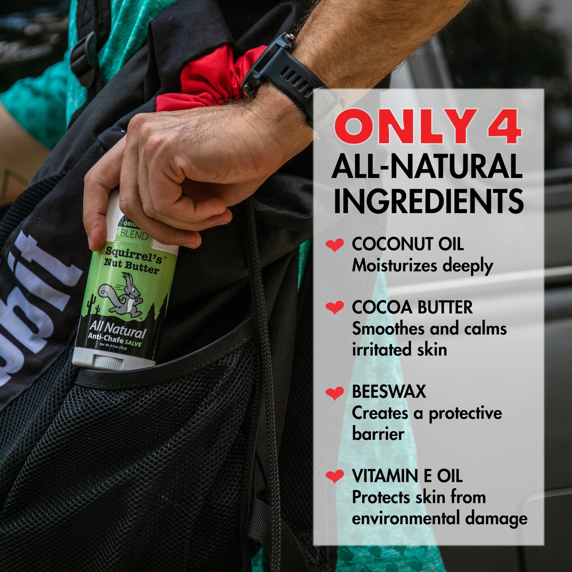 Squirrel's Nut Butter Anti-Chafe Stick – All-Natural Chafe Prevention & Skin Care for Athletes, Runners & Adventurers, 1.7 oz
