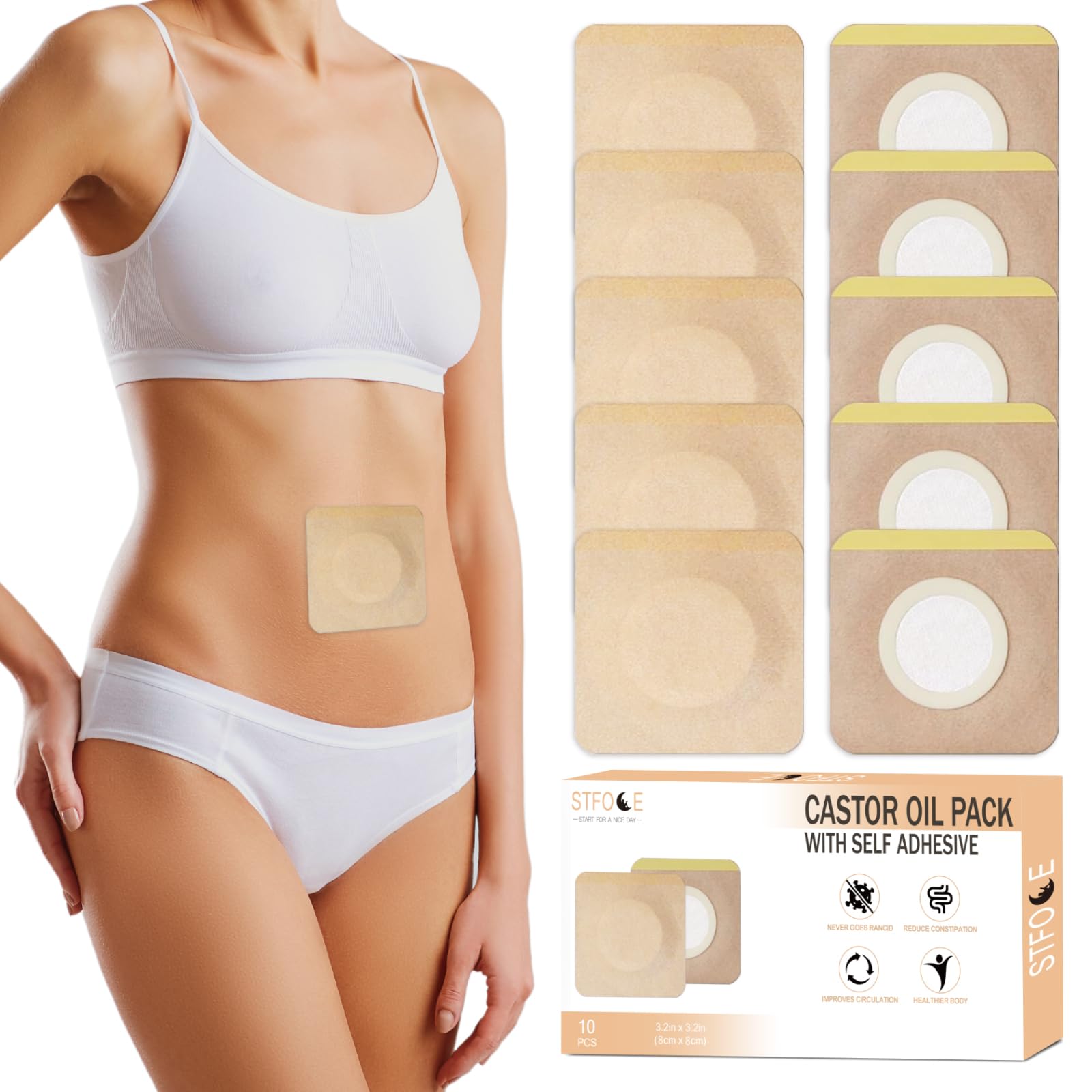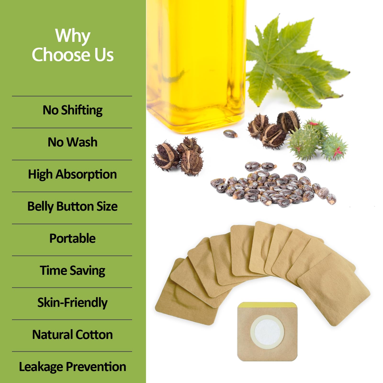 - No Wash & Time Saving: 1.Tear off the release paper. 2.Pour an appropriate amount of castor oil or other essential oil onto the center of the cotton fabric. 3. Stick it to your body. It can be discarded after use. Compared to traditional castor oil kit, this is more convenient and time-saving