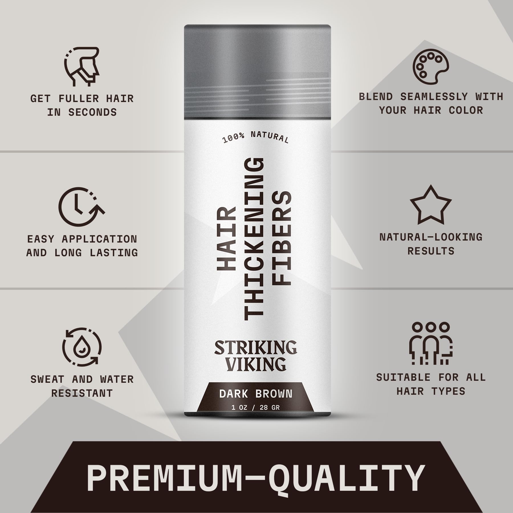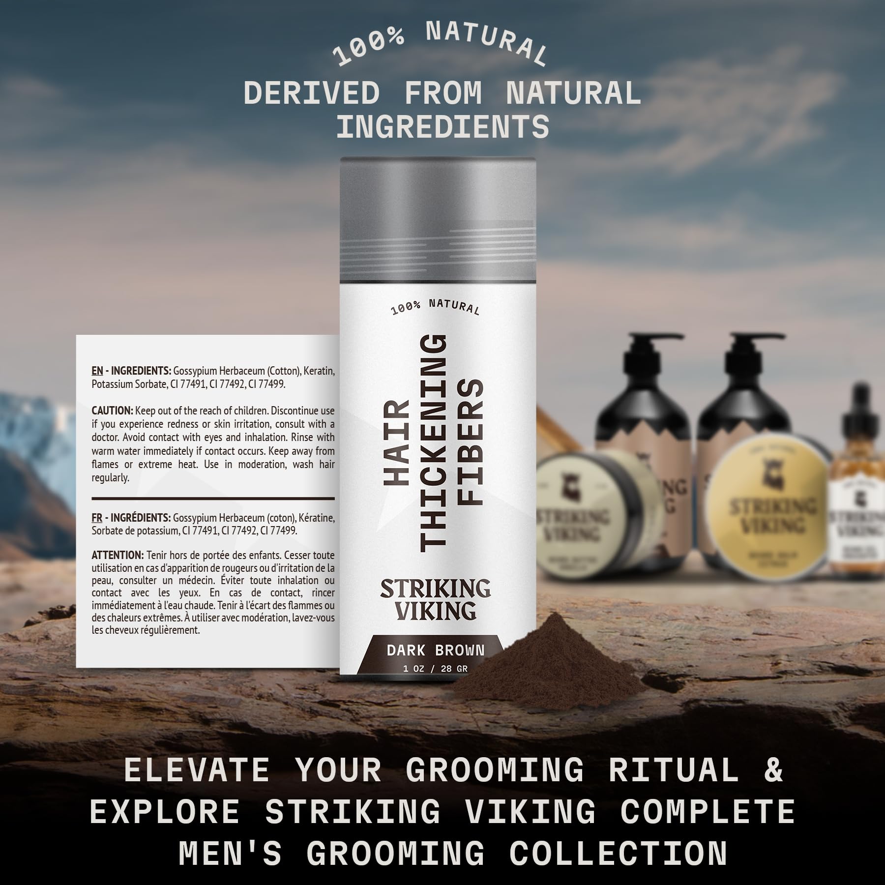 Striking Viking Hair Building Fibers for Thinning Hair - Dark Brown, 0.98 oz – Long-Lasting, Natural Hair Filler Powder for Men & Women