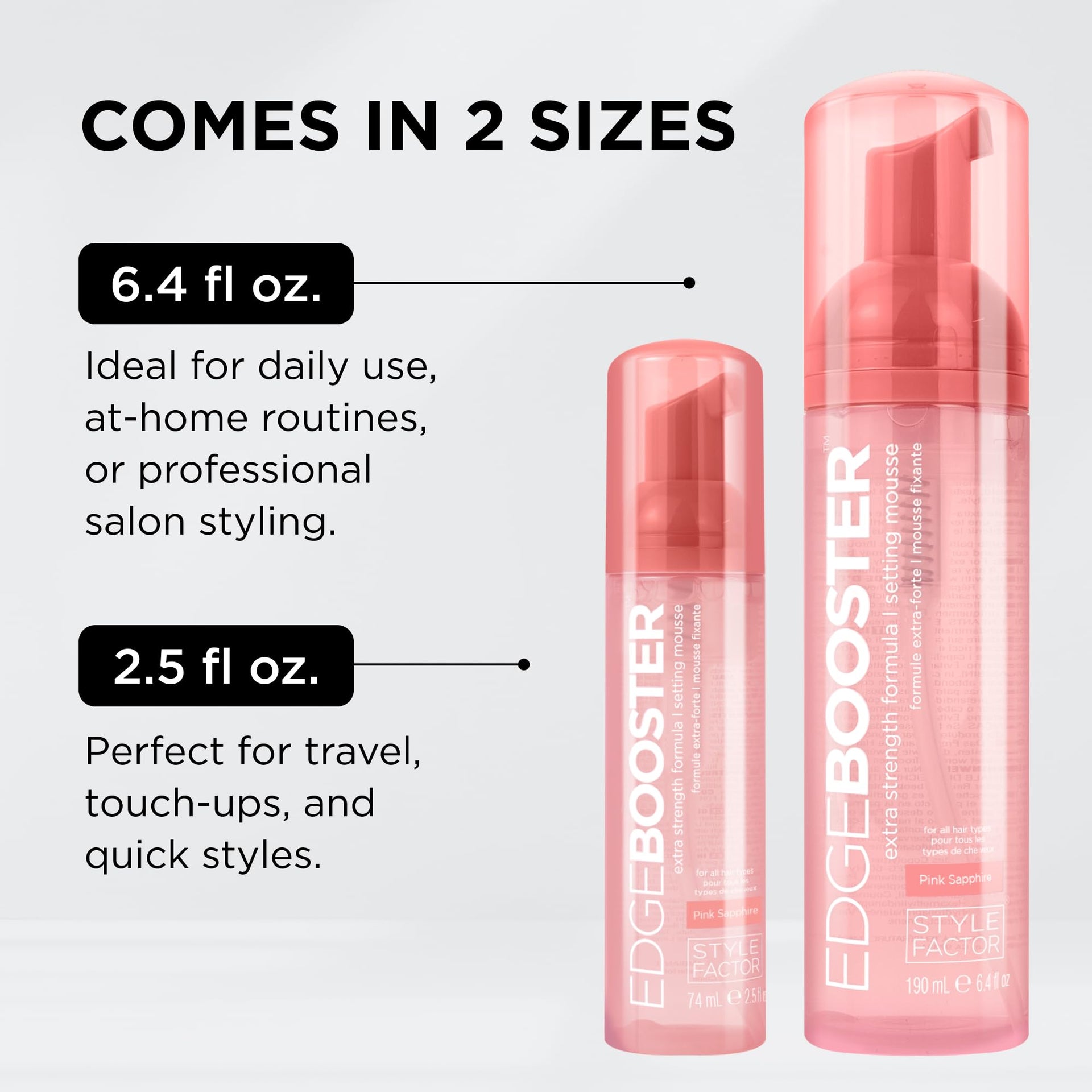 Style Factor EDGE BOOSTER Extra Strength Setting Mousse Travel Size โ€“ Frizz Control, Extra Volume, and Conditioning โ€“ 2.5oz Morganite Mousse for Curly Hair