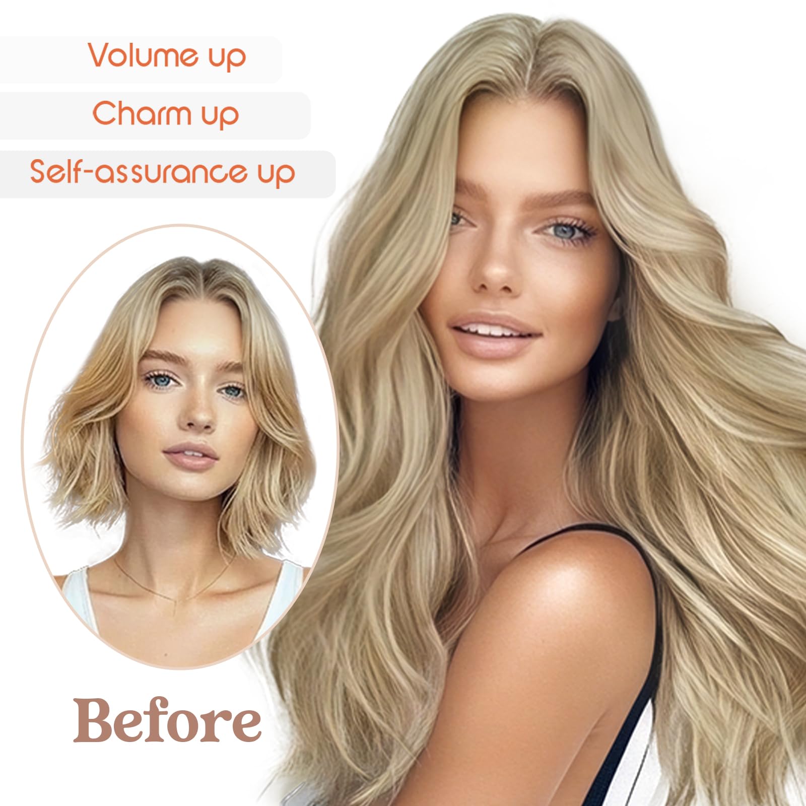 Sunny Hair Invisible Wire Human Hair Extensions – Real Fish Line Extensions Golden Blonde with Medium Blonde Highlights #16/22, 18 Inch
