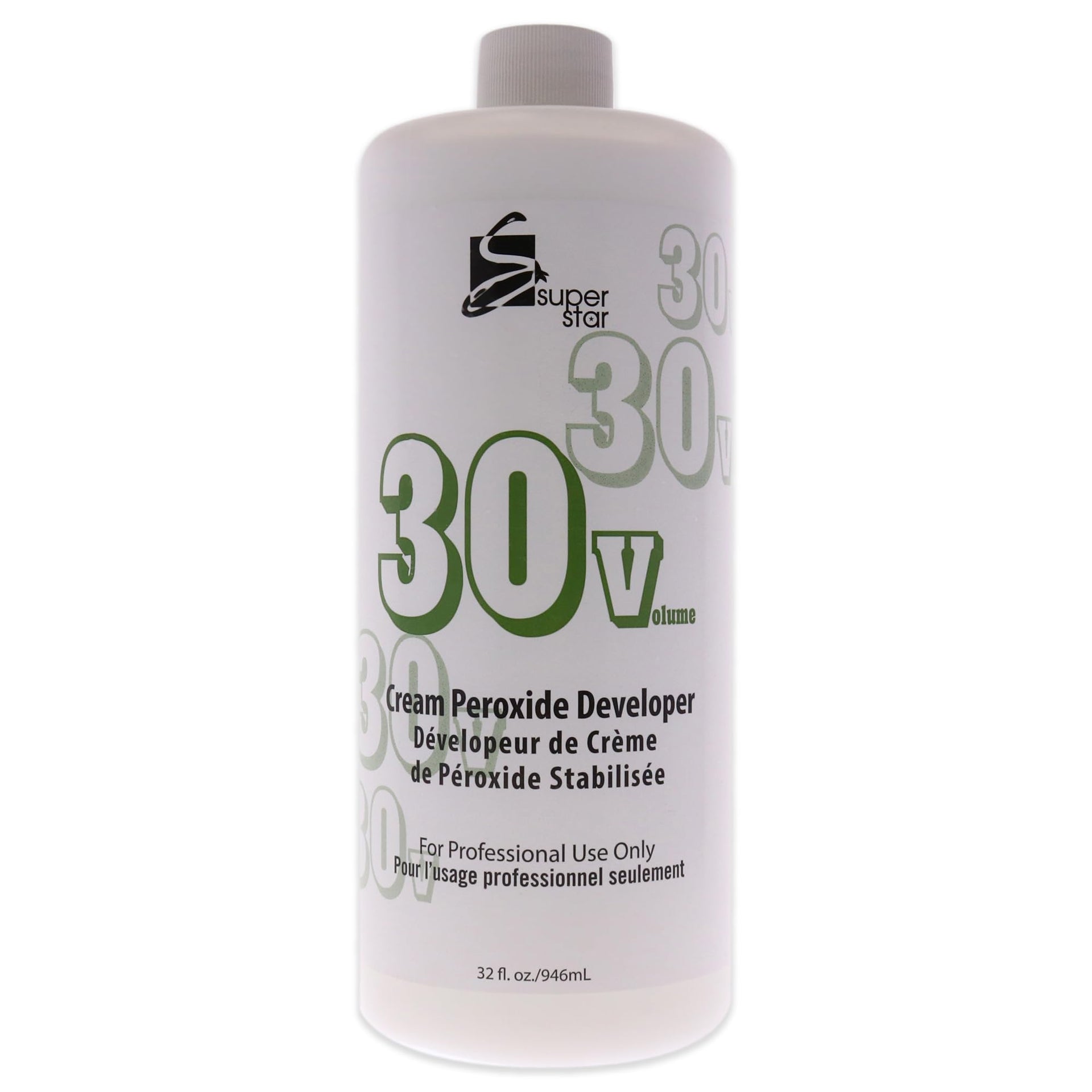 Details: Superstar stabilized Cream Peroxide Developer 30V HC, cream Peroxide Developer will not run or drip. Highlighting/dimensional haircoloring is done faster, easier and more precisely. It can also be substituted for liquid peroxide with gel consistency. Bleaches and lift colors in hair to make it the color needed. When loosening cap point away from face. Store in a cool, dark place with cap tightened. To prevent internal pressure, which may cause the container to burst, avoid contamination and heat. Avoid contact with eyes. Keep container closed when not in use.