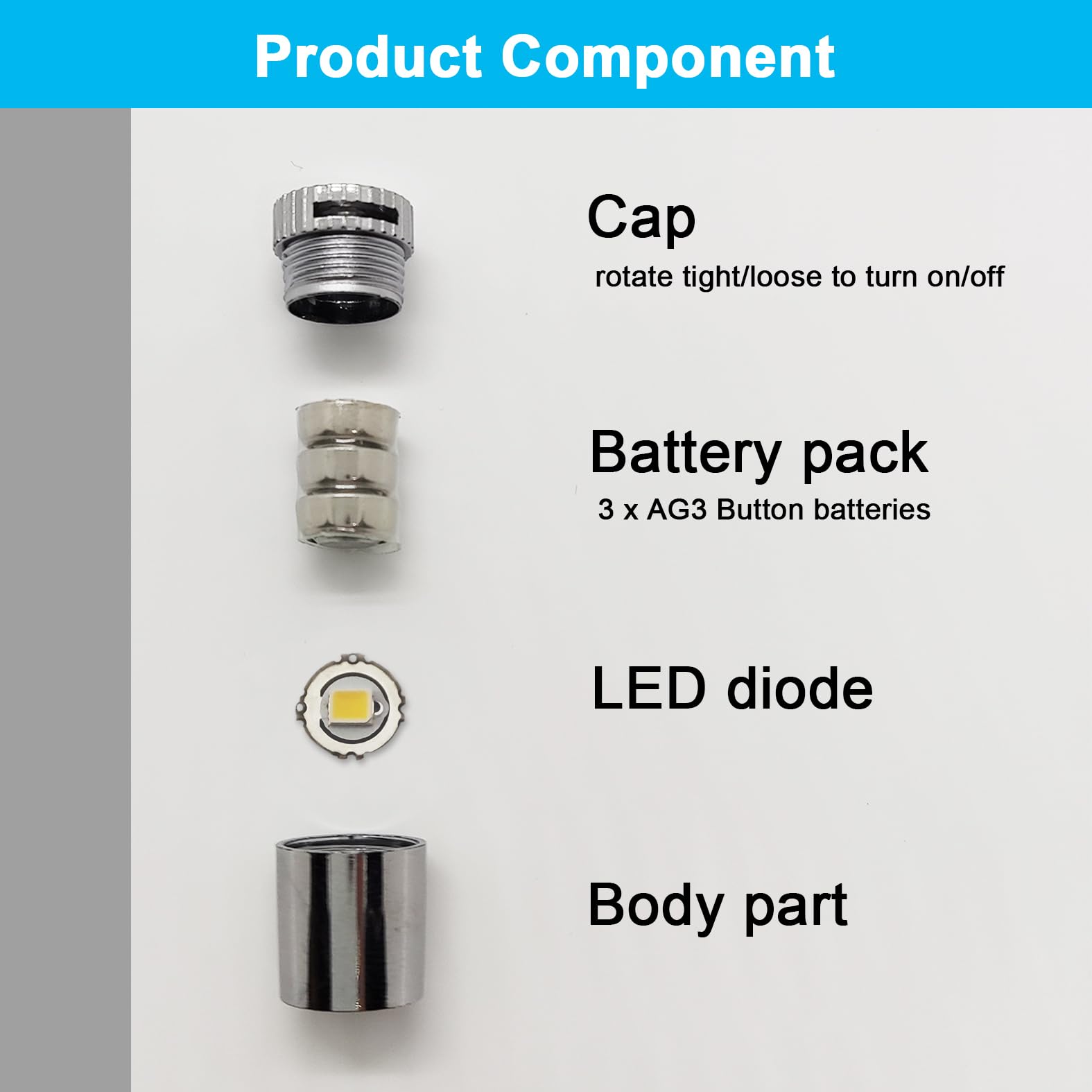 - The mini lights powered by three AG3 batteries (included) Other suitable battery types: LR41,384,392