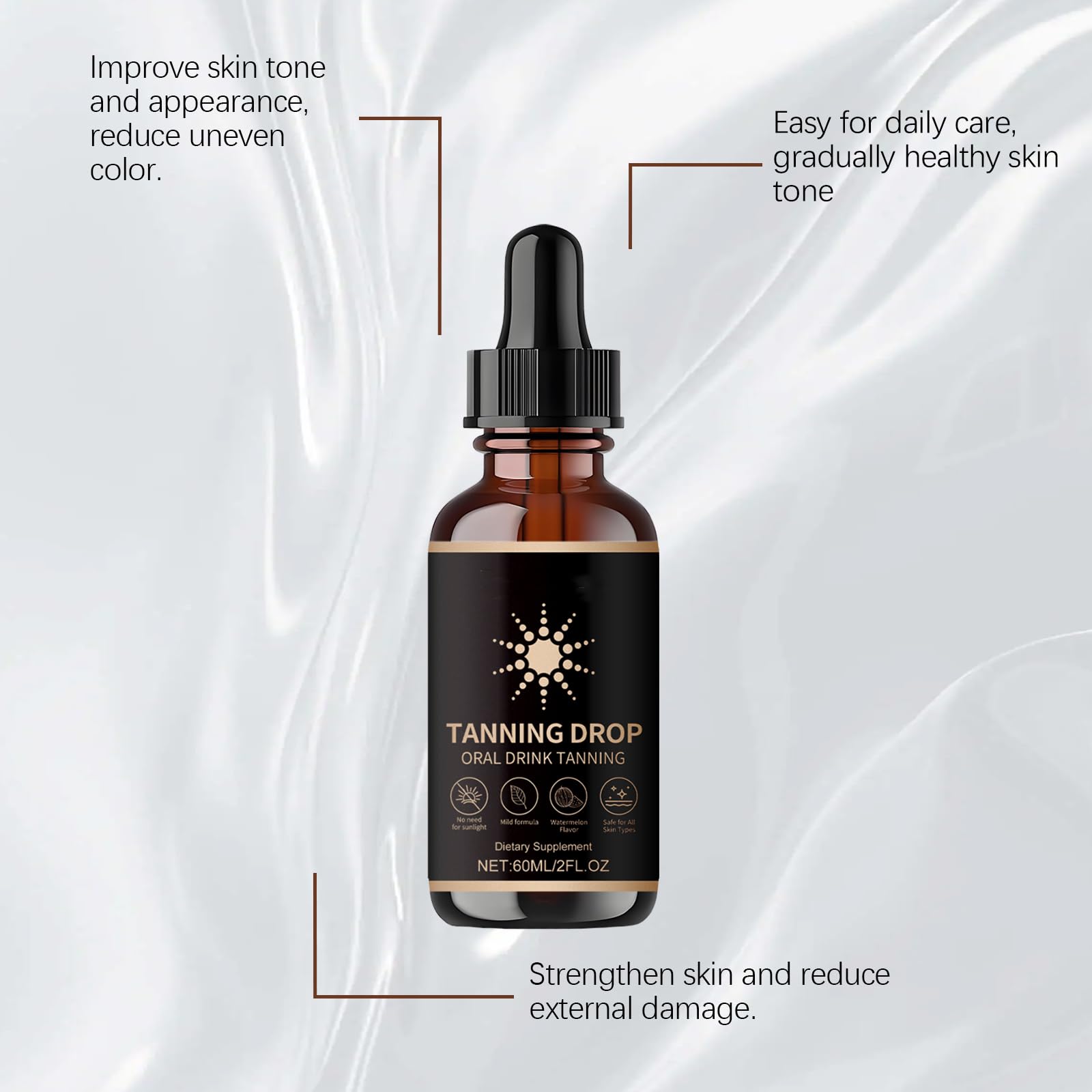 - 🏖️【HIGH EFFICIENCY】This tanning drops to drink could be absorbed through the digestive system. Even coloring, consistent color all over the body. Continuously exert the effect, regular use, and maintain the tanning state stably, allowing the skin to achieve an even tan without UV exposure.