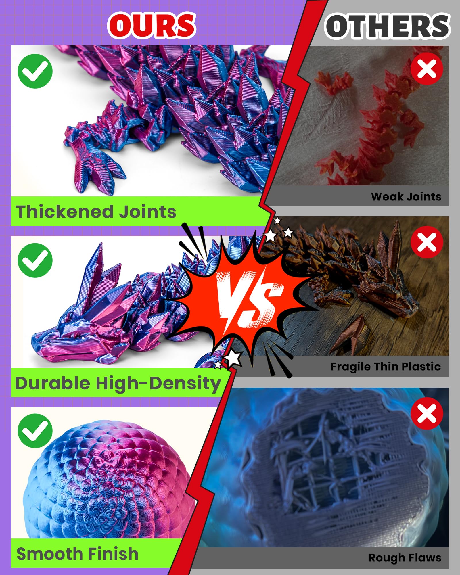 TBOLINE 12" 3D Printed Dragon Egg Toy – Articulated Crystal Dragon, Fidget & Dinosaur Egg for Kids Boys & Girls Ages 4-12