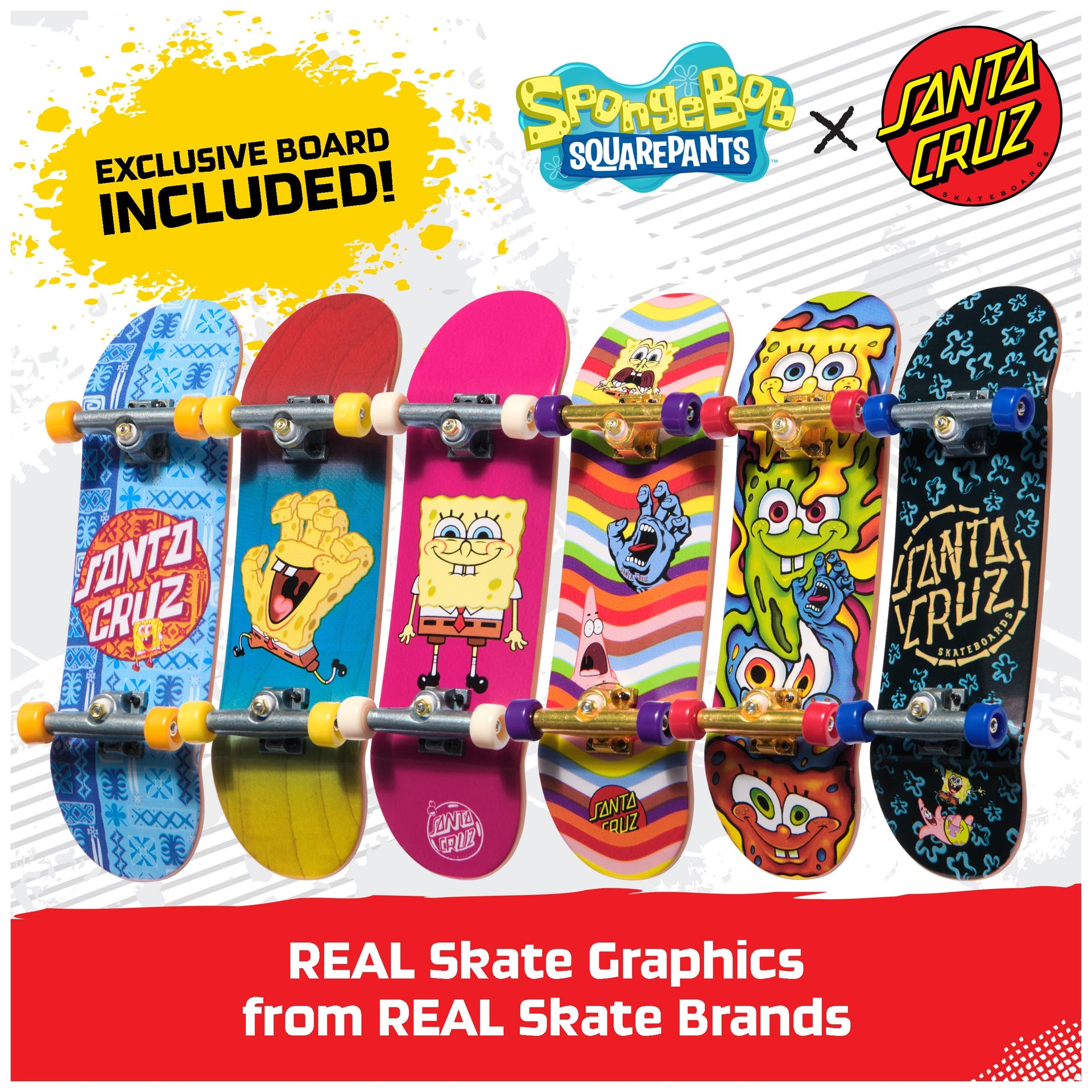 TECH DECK, Spongebob Sk8shop Fingerboard Bonus Pack, Collectible and Customizable Mini Skateboards, Kids Toys for Ages 6 and up