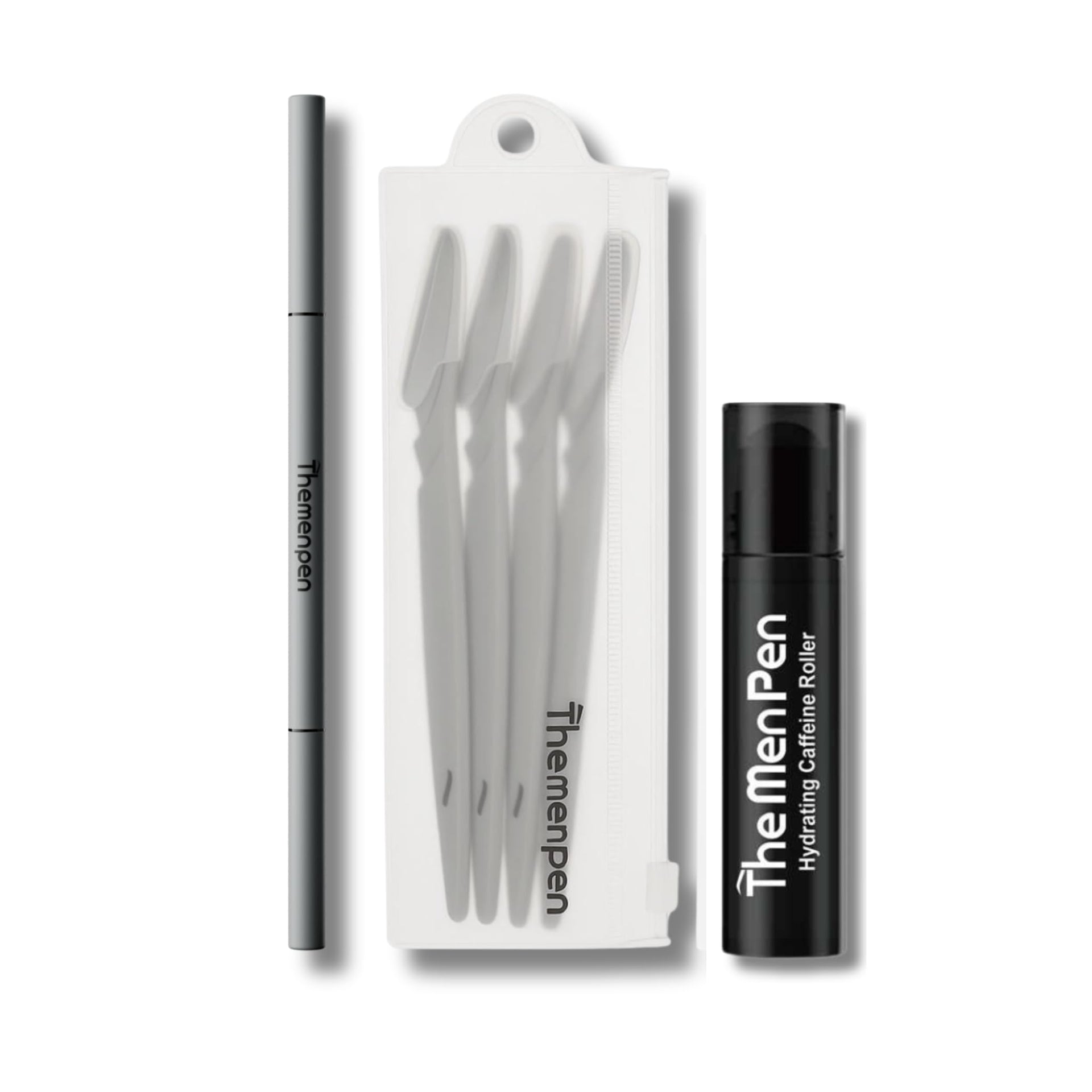 - 3-in-1 Grooming Kit for Men – Includes Eyebrow, Beard & Hair Filler Pen, Caffeine Eye Roller, and Razor 4-Pack for a complete, everyday grooming solution. Perfect for quick touch-ups or a polished, confident look.