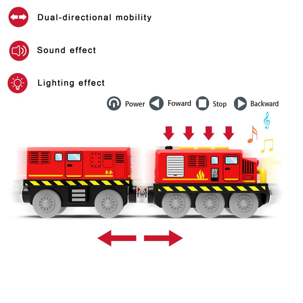 - The electric train is magnetic connected. It works with all major brand wooden train set system, compatible with Thomas & Friends, Brio, Chuggington, Melissa and Doug, Kidkraft and more.
