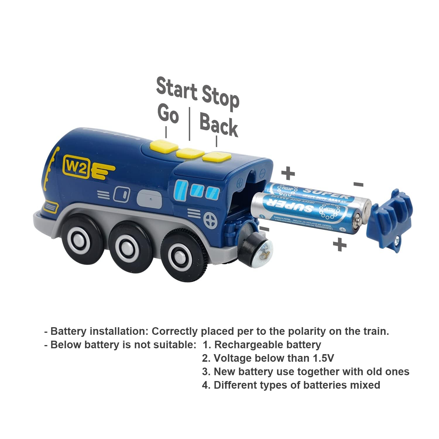 - The traction train set is a battery powered train that can move forward, reverse and stop, just push the button of power, then start go, back, or pause, turn on lights along with real sounds.