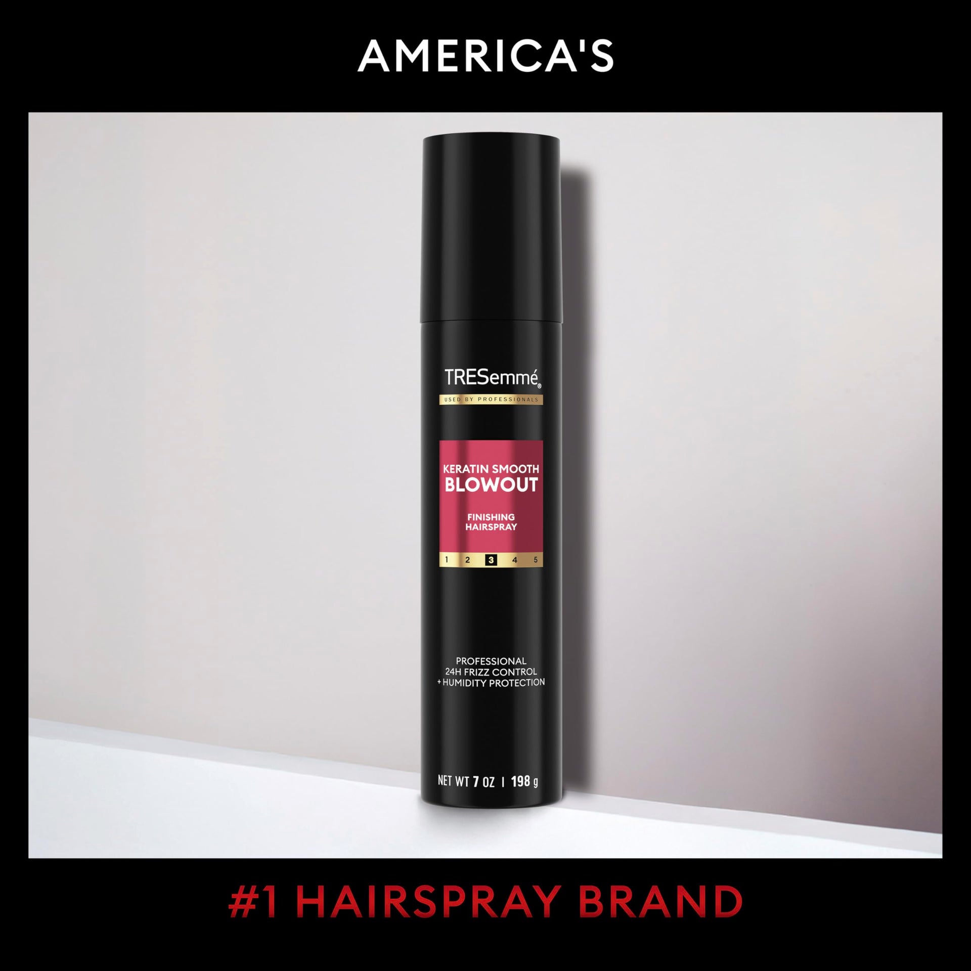 Details: Frizz? Never heard of her. Lock in your smoothest blowout and block out humidity with TRESemmé Keratin Smooth Blowout Finishing Hairspray. This anti-frizz hairspray gives you 3 days of weightlessly smooth hair so your blowout can lasttt. Our formula gives you the flexible hold that keeps your style in place without the stiffness, stickiness or crunch! It's also lightweight with added heat protection. For best results, wash with Keratin Smooth Blowout Shampoo and Conditioner for heat protection that starts in the shower. Apply our Keratin Smooth Blowout Heat Protect Spray throughout damp hair. Touch-up with Keratin Smooth Blowout Serum. For over 70 years, TRESemmé has been committed to democratizing salon trends, making salon-quality products accessible to everyone, every day making it America's #1 Hairspray brand. You can count on TRESemmé for trend-inspired, professional-grade products designed to maximize ooh la la in the everyday. So as you navigate your styling journey, we’ll be here to help you style your hair (and life) your way.