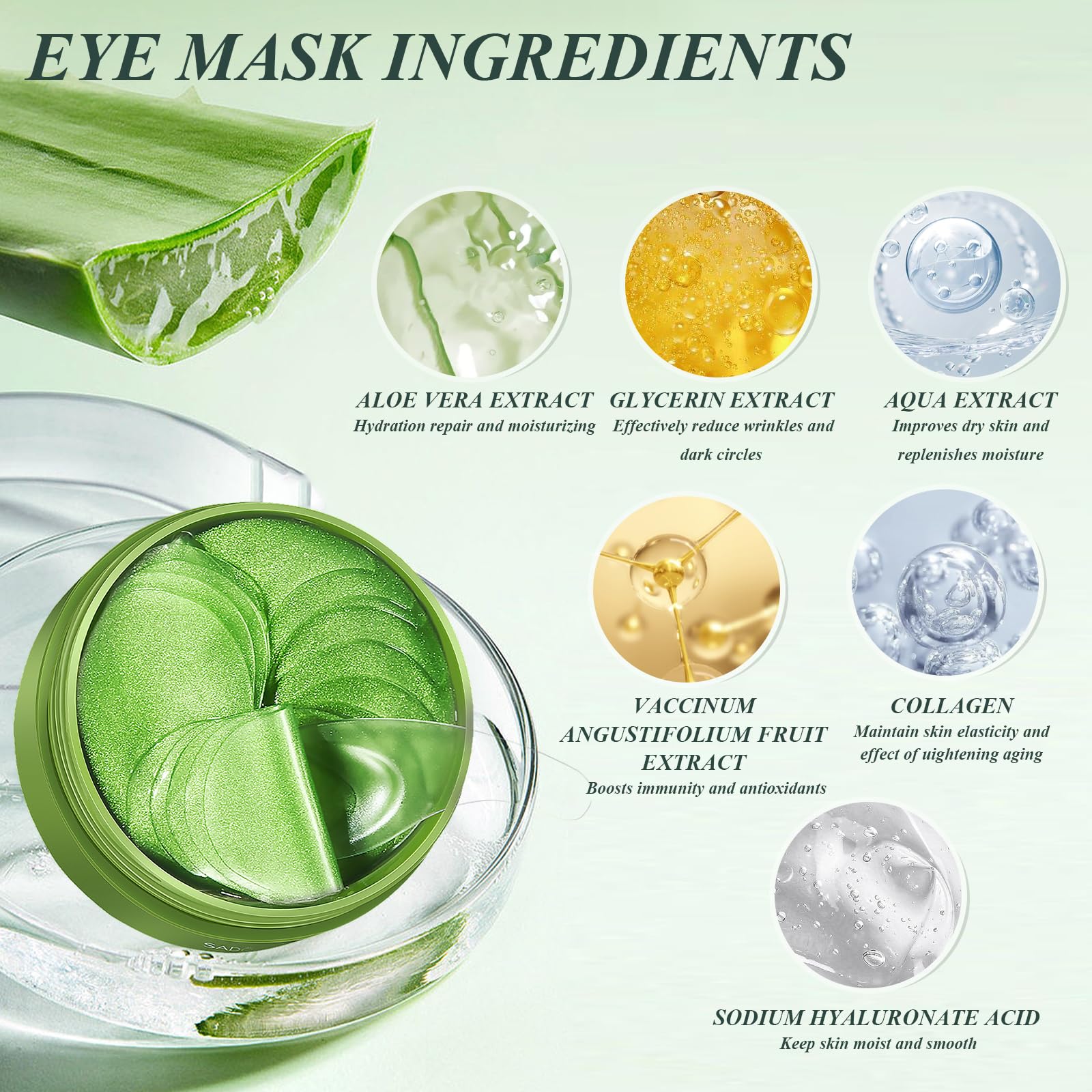 Under Eye Patches – 60 Aloe Vera Masks for Dark Circles, Puffiness, Wrinkles & Fine Lines, Natural Extracts Eye Care Treatment