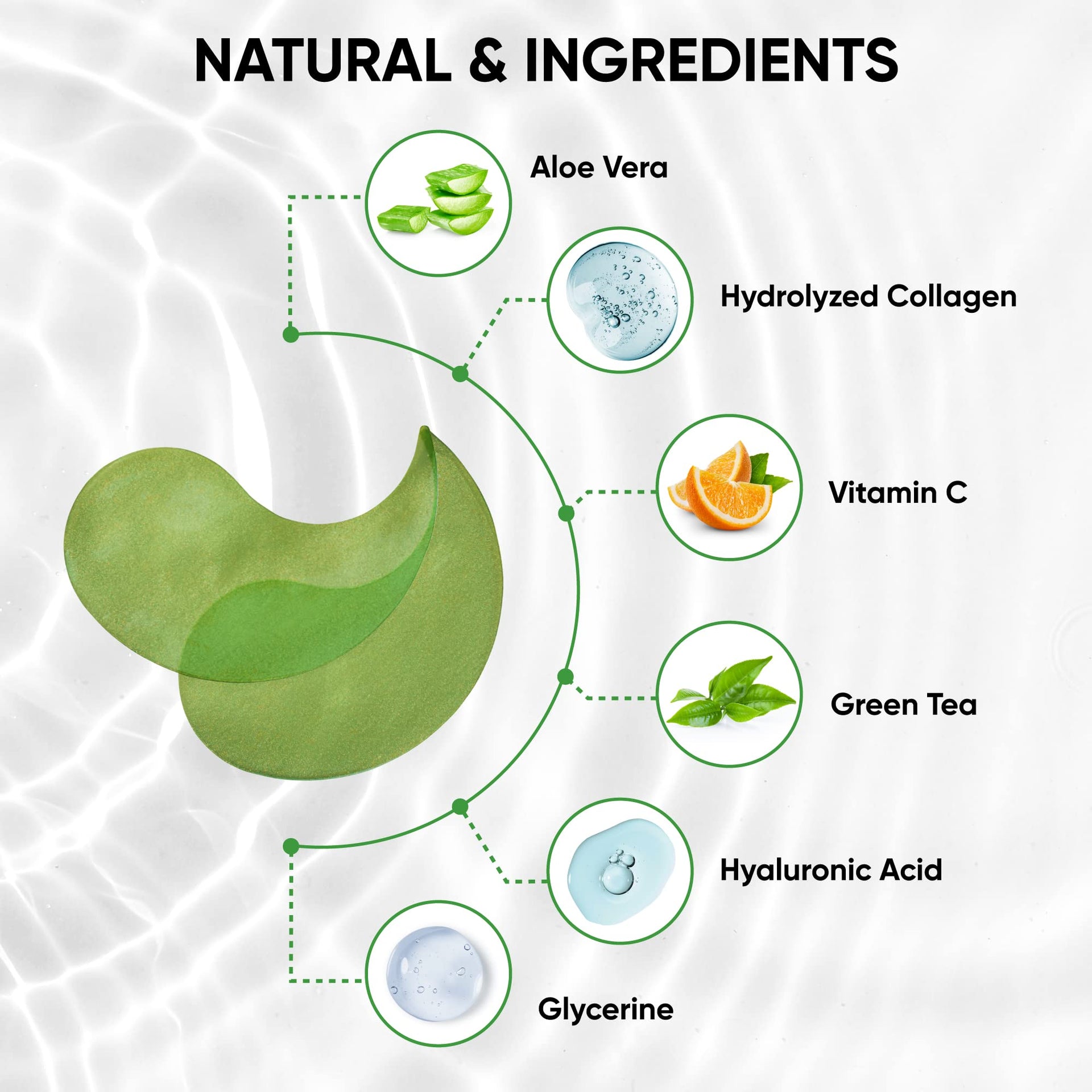 Under Eye Patches for Dark Circles & Puffiness – Green Tea Skincare Mask with Hyaluronic Acid, Collagen & Caffeine, 60 Pads, Gifts