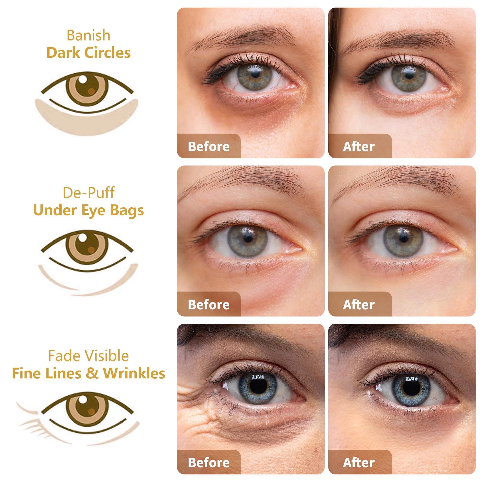 Under Eye Patches 30 Pairs – 24K Gold, Hyaluronic Acid & Rose Eye Mask for Dark Circles, Puffy Eyes, Wrinkles, Under Eye Care Gift