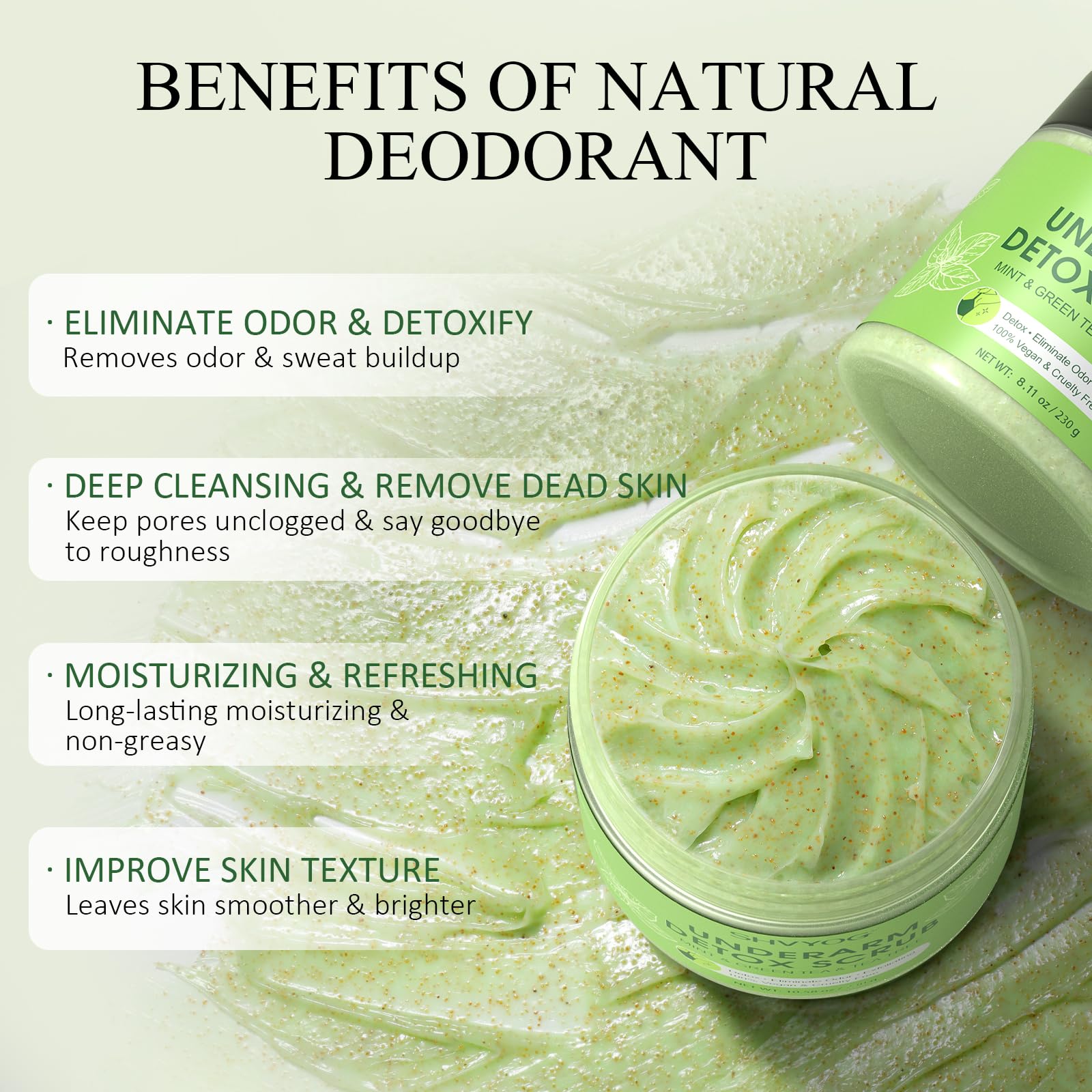 Underarm Detox Scrub – Green Tea, Mint & Tea Tree Deodorant, Natural Dark Armpit Remover, Odor Eliminating & Exfoliating, Unisex 8.11 oz