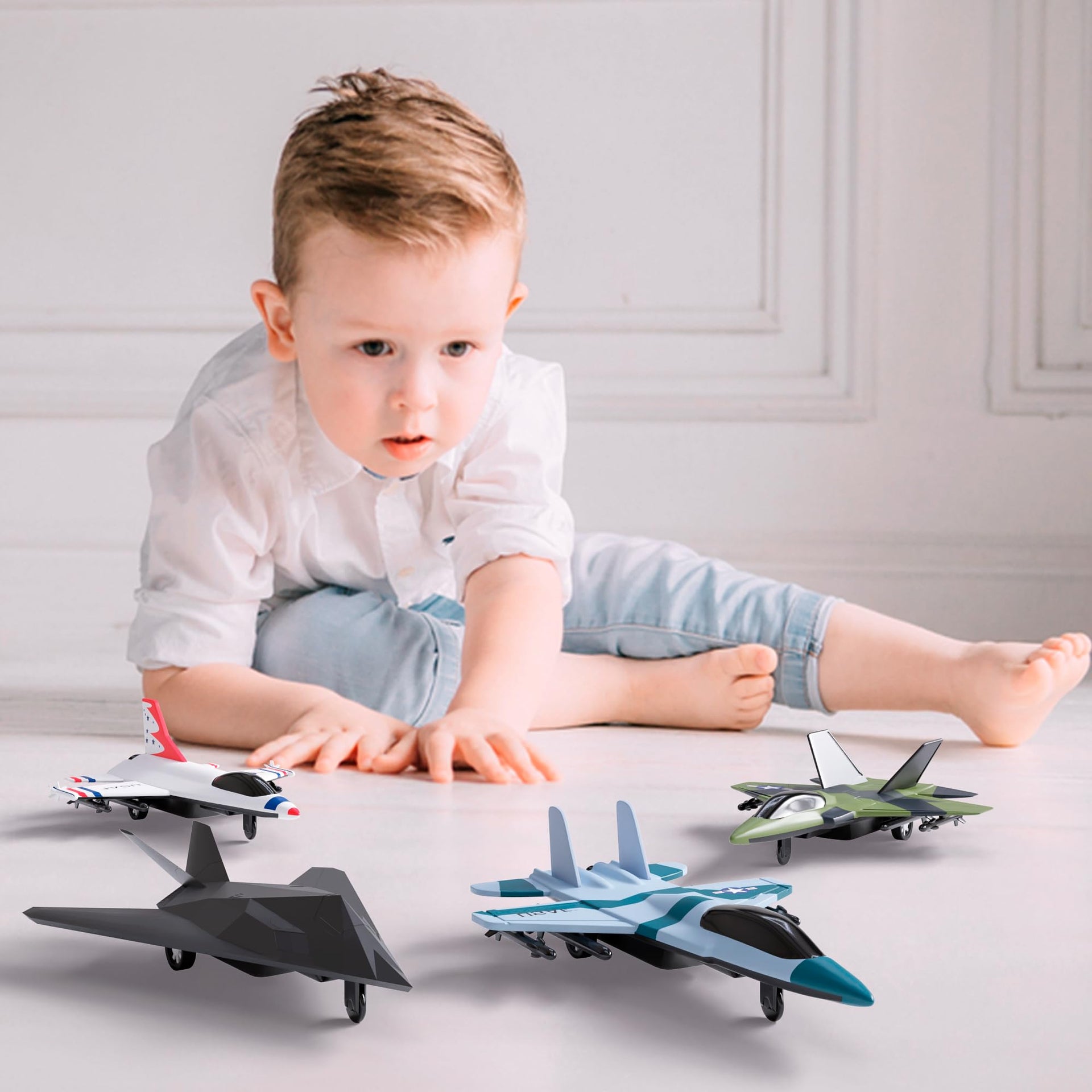United Sates Air Force 4-Pack Toy Jet Squadron Die Cast Airplanes, Pull Back Military Fighter Jets, Diecast Air Plane Models