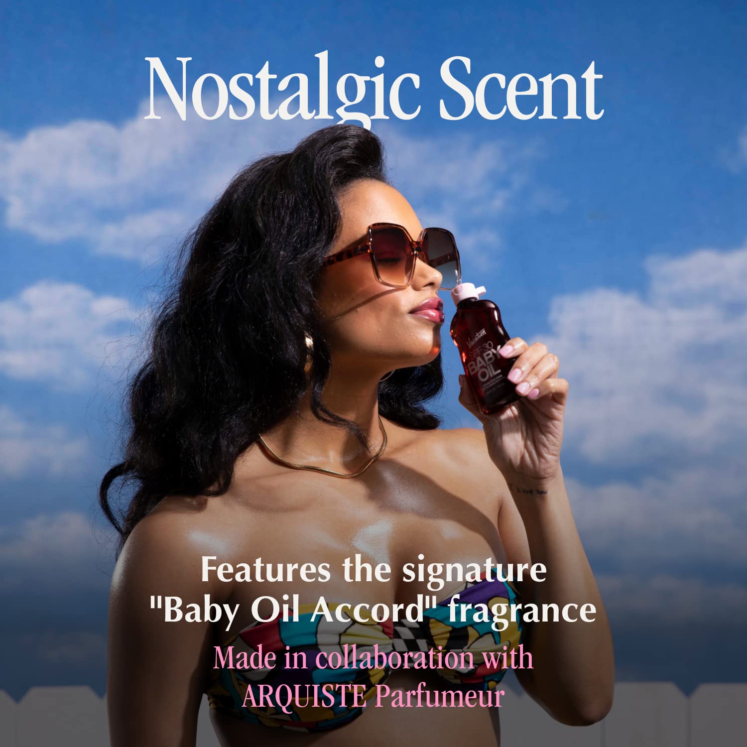 - NOSTALGIC SCENT - Features the signature “Baby Oil Accord” scent. A modern, more sophisticated take on nostalgic baby oil scents developed by the award-winning ARQUISTE Parfumeur. A celebrated scent that will allow you to indulge in true nostalgic luxury with our tanning oil for outdoor sun while giving your skin the best in sun protection.