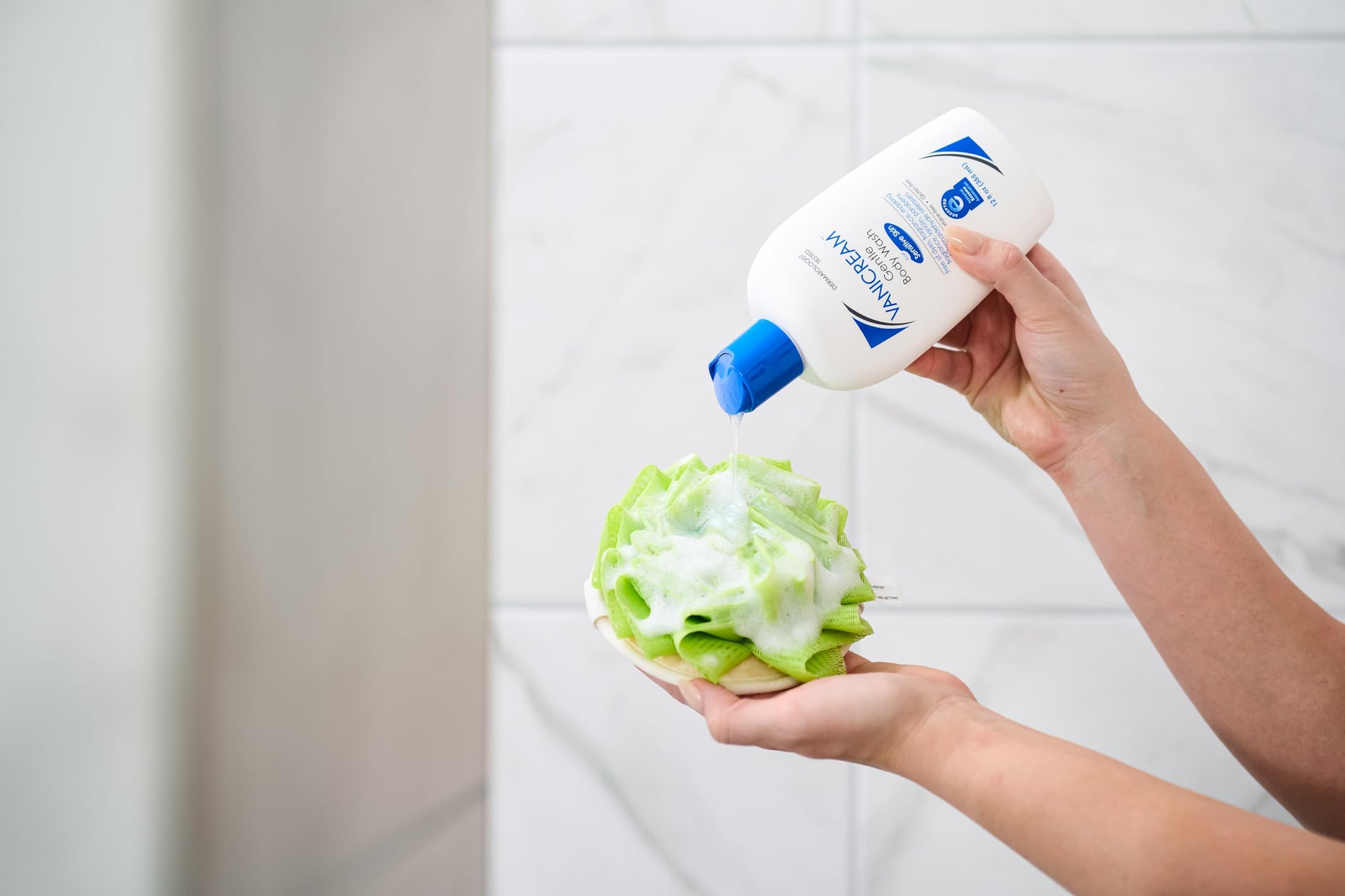 Dermatologist-tested and accepted by the National Eczema Association, this gentle formula contains ingredients that are essential components of the skin and benefit all skin types. Apply to wet pouf, washcloth, or hands; lather, rinse, and pat dry. For best results, apply any Vanicream Moisturizer (sold separately) after bathing.