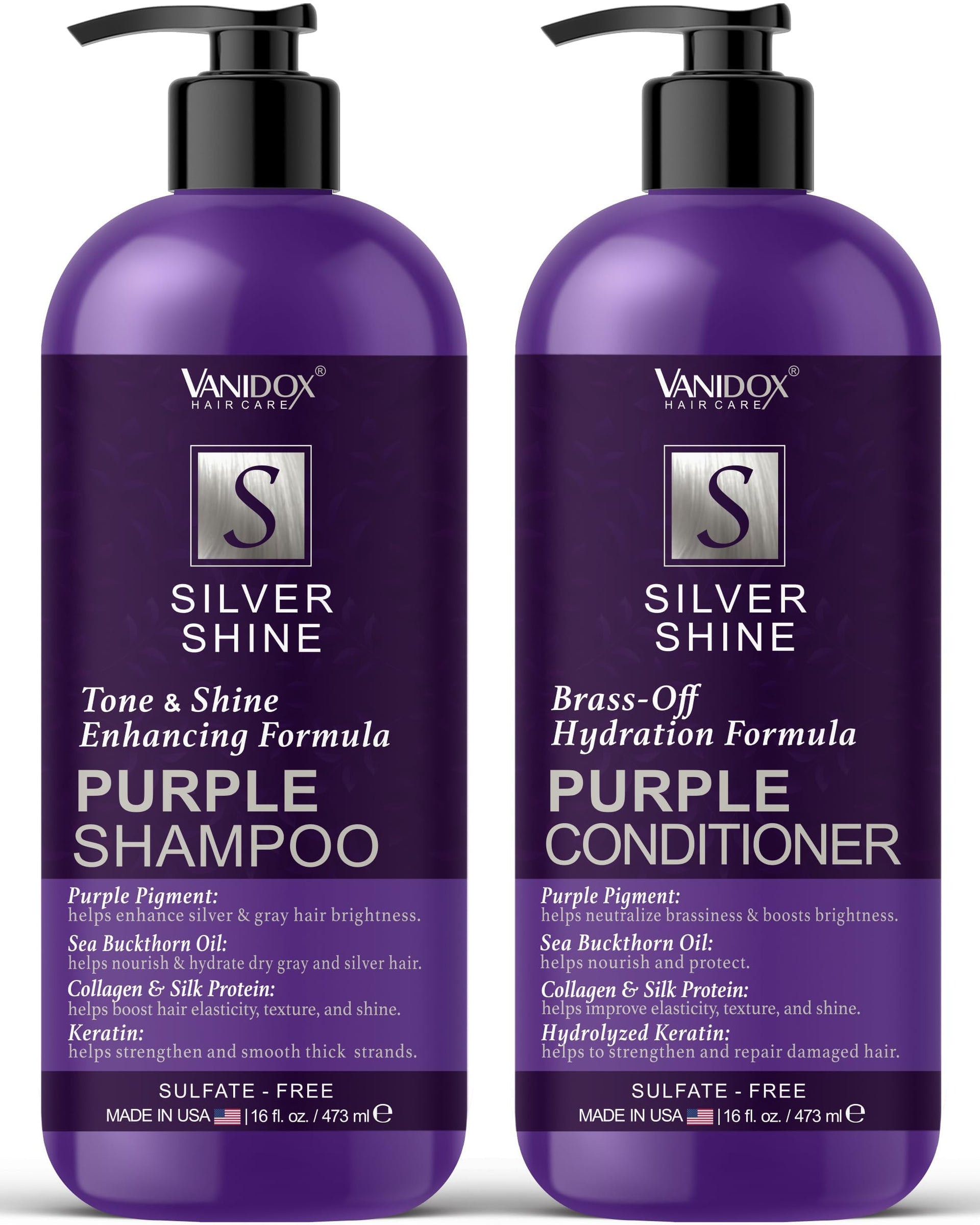 - Comprehensive Toning Care - The VANIDOX Purple Shampoo and Conditioner Set offers a complete solution for those looking to tone and enhance silver and grey hair. This gray hair shampoo and conditioner set is specially designed for color-treated hair, providing the perfect balance to maintain the richness, vibrancy, and cool tones of your color.