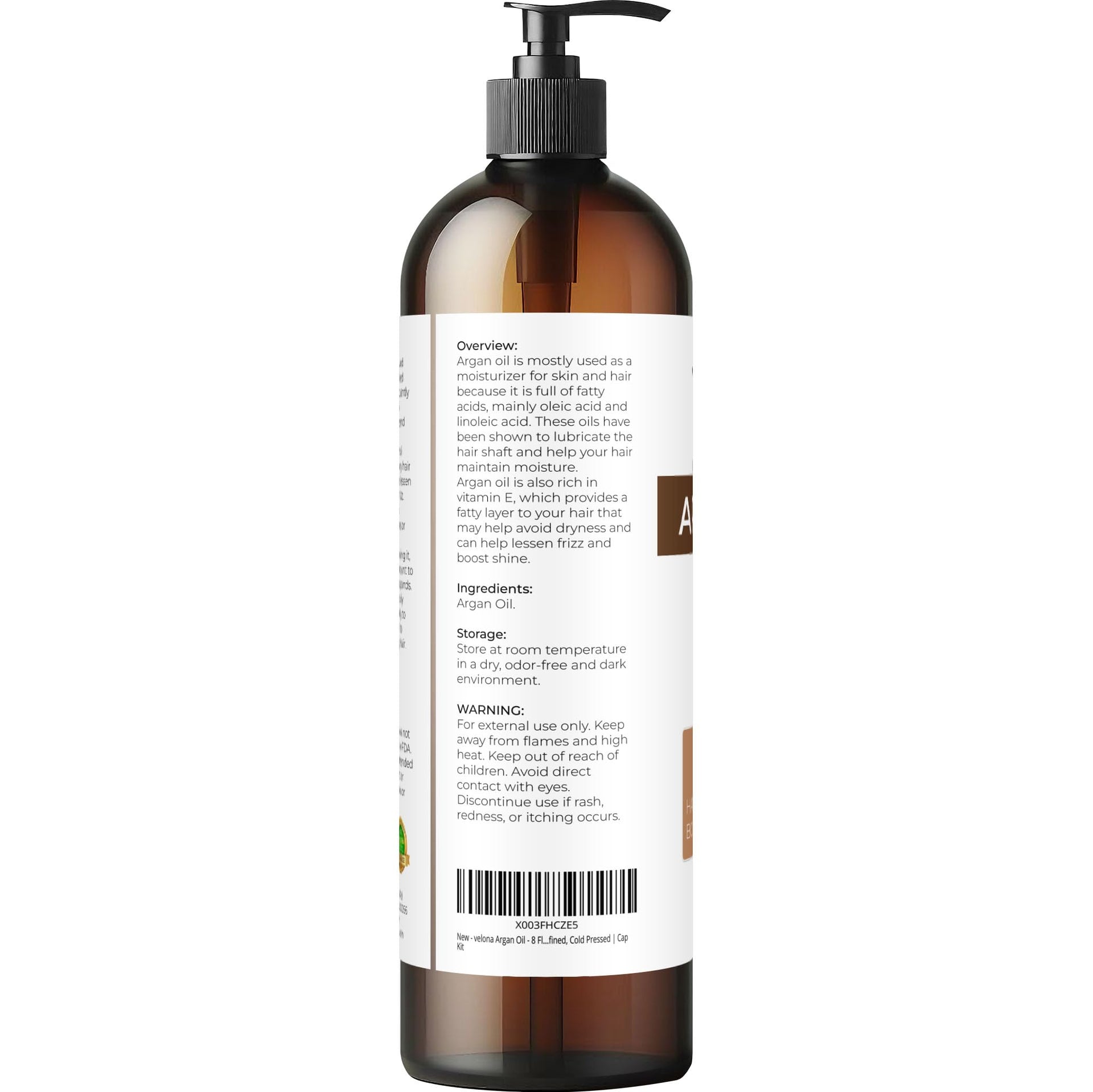 velona Argan Oil - 8 Fl Oz | 100% Pure and Natural | Morocco Oil | Skin, Body and Face Care | Nails Protector | Unrefined, Cold Pressed | Cap Kit