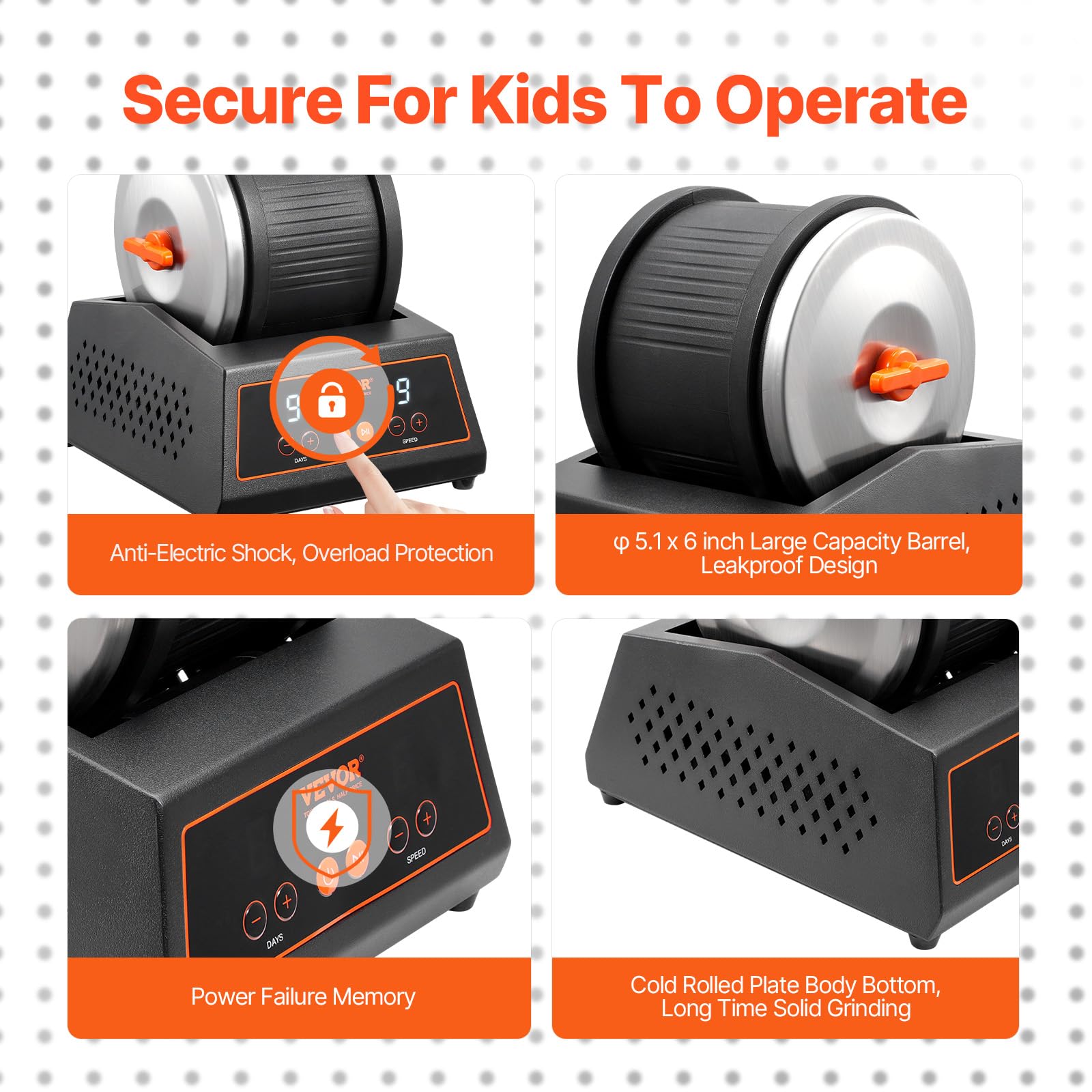 - Upgraded 9-Speed Control: This rock polishing machine features an easy-to-use operating panel, allowing you to choose from 1-9 speeds and 1-9 day timer. Whether you're an 8-year-old beginner or a rock collection enthusiast, you'll enjoy effortlessly polishing gemstones to create crafts comparable to those of a master.