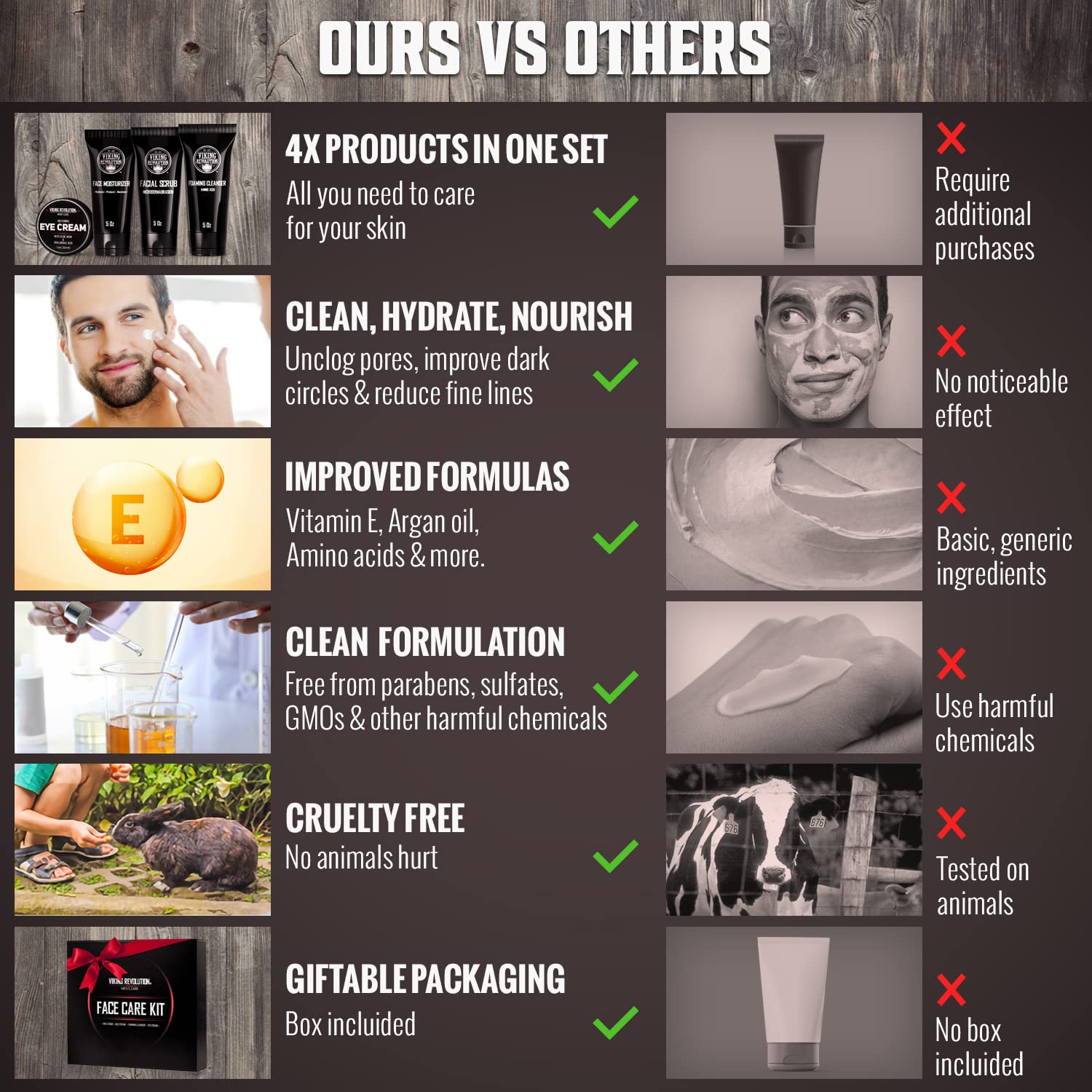 Viking Revolution Men's Skincare Kit – Face Moisturizer, Microdermabrasion Scrub, Foaming Cleanser (5oz) & Eye Cream (1oz)