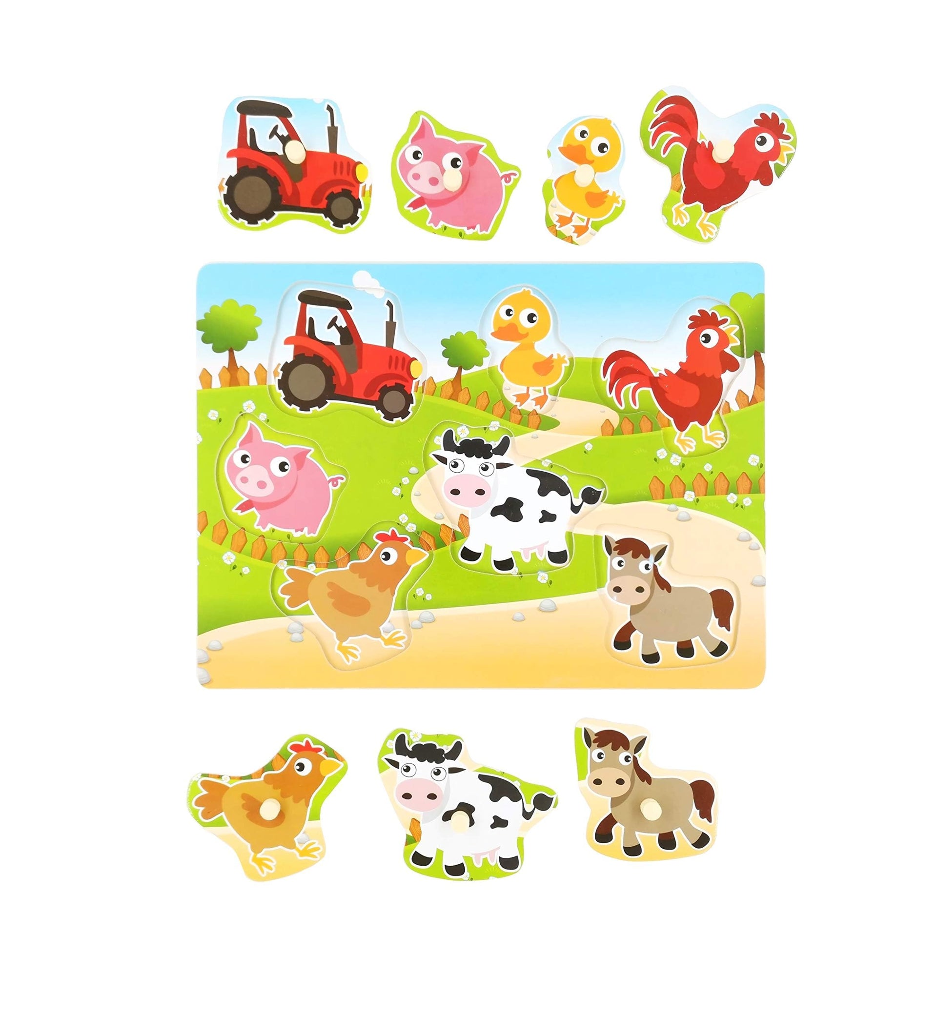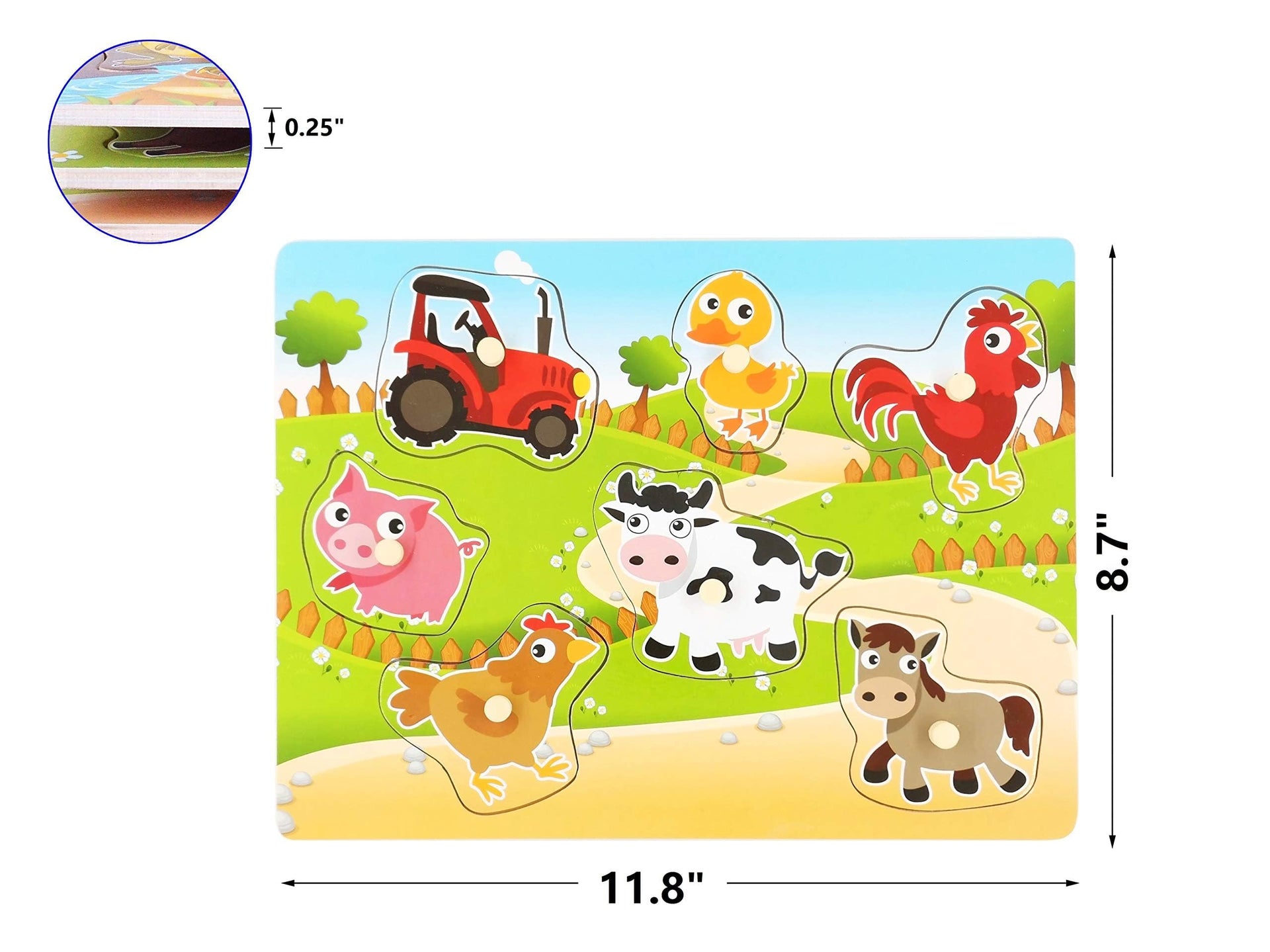 Wooden Puzzles Farm Chunky Baby Puzzles Peg Board, Full-Color Pictures for Preschool Educational Jigsaw Puzzles, 7Pieces